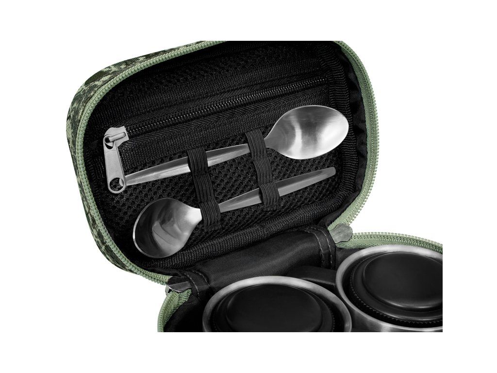 Delphin SPACE je označení pro exkluzivní sérii tašek z dílny značky Delphin. Vyznačuje se špičkovým zpracováním, kvalitními zipy, ale zejména výjimečným designem s použitím C2G kamufláže. Rozměrem malý, obsahem velký – takový je Delphin COTEA. Produkt s malými transportními rozměry, díky čemuž nezabere ve výbavě téměř žádné místo. Přesto ukrývá sadu, která potěší každého, kdo si u vody rád vychutná dobrou kávu nebo teplý čaj. COTEA obsahuje dva kvalitní nerezové hrníčky, dvě čajové lžičky a také dvě uzavíratelné nerezové nádobky, které poslouží například pro cukr a kávu. Samotná taštička disponuje malou síťovanou kapsou, která bez problémů pojme dostatečnou zásobu čajových sáčků. Navíc je opatřena kvalitními zipy, přičemž ten vnější je vybaven praktickým taháčkem s logem firmy Delphin. COTEA je designováno v jedinečné C2G kamufláži s efektním piktogramem definujícím využití tohoto zajímavého produktu. Sada obsahuje: -základní tašku -2 čajové lžičky -2 nerezové hrníčky -2 uzavíratelné nádobky Technické parametry: Vnější rozměr: 17cm x 12cm x 10cm Objem hrníčků: 2dcl Objem nádobek: 1dcl Stylová patentovaná kamufláž z dílny značky Delphin pod označením C2G má mnoho podob a úhlů pohledu. Přesně tak i její název, který můžeme volně přeložit jako Carpath 2. generace, což přímo odkazuje na jejího předchůdce, ale můžeme jej číst i jako Carpath to Green, tedy přechod myšlenky Carpathu do zelené barvy. Její jedinečnost a nezaměnitelnost spočívá v prvcích, ze kterých je vytvořena. Na první dojem jde o kamufláž tvořenou třemi různými odstíny zelené. Všechno se však změní při detailnějším pohledu, kdy si všimnete siluety kaprů, komponent kaprařské montáže a log značky Delphin spolu s označením C2G. Díky tomuto neopakovatelnému provedení se vaše rybářská výbava okamžitě stane jedinečnou a maximálně originální.Doplňkové parametry