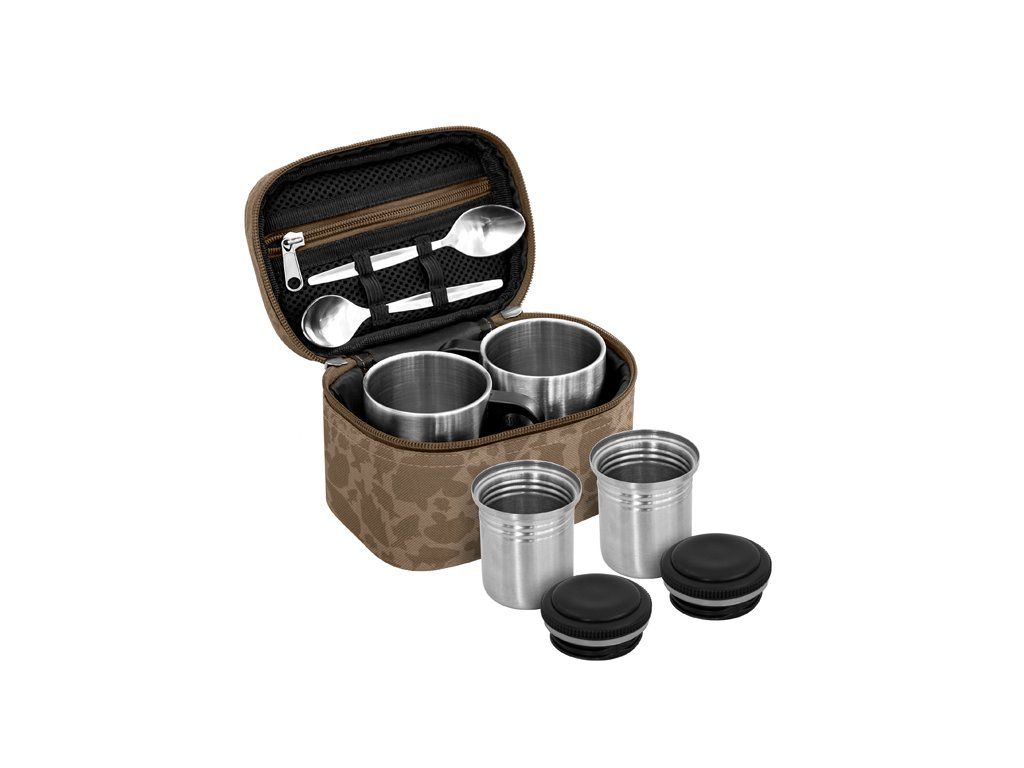 Rozměrem malý, obsahem velký - takový je Delphin COTEA. Produkt s malými transportními rozměry, díky čemuž nezabere ve výbavě téměř žádné místo. Přesto ukrývá sadu, která potěší každého, kdo si u vody rád vychutná dobrou kávu nebo teplý čaj. COTEA obsahuje dva kvalitní nerezové hrnky, dvě čajové lžičky a také dvě uzavíratelné nerezové nádobky, které poslouží například na cukr a kávu. Samotná taštička disponuje malou síťovanou kapsou, která bez problémů pojme dostatečnou zásobu čajových sáčků. Navíc je opatřena kvalitními zipy, přičemž ten vnější je vybaven praktickým držákem s logem firmy Delphin. COTEA je designované v oblíbené CARPATH kamufláži s efektním piktogramem definujícím využití tohoto zajímavého produktu. Sada obsahuje: - základní tašku - 2 čajové lžičky - 2 nerezové hrnky - 2 uzavíratelné nádobky Technické parametry: Vnější rozměr: 17cm x 12cm x 10cm Objem hrnků: 2 dcl Objem nádobek: 1dclDoplňkové parametry