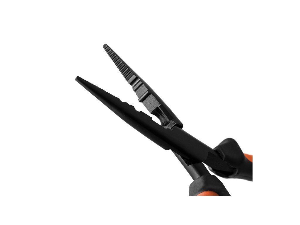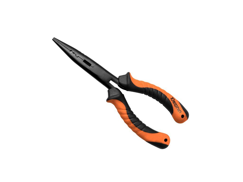 Delphin MULTI jsou dlouhé kleště, které jsou určeny jsou pro vyprošťování háčků z tlam dravých ryb v případech, kde na to klasický peán už nestačí. Jejich délka je 18cm. Vnitřní strana ramen kleští poskytuje dostatečně drsnou plochu pro uchopení i velkých dvojháčků a trojháčků. Navíc jsou jejich čelisti vybaveny integrovaným střihačem a také krimpovací částí o šířce 9mm. Jsou vyrobeny z oceli s vysokým podílem uhlíku a jejich obě rukojeti jsou vybaveny plastem oranžové a černé barvy, které jsou dobře viditelné za každých podmínek a dobře padnou do ruky. Na obou ramenech rukojeti se nacházejí otvory na provlečení šňůrky. S našimi kleštěmi MULTI dokážete od nynějška rybu rychle a bezpečně zbavit zaseknutých háčků.Doplňkové parametry