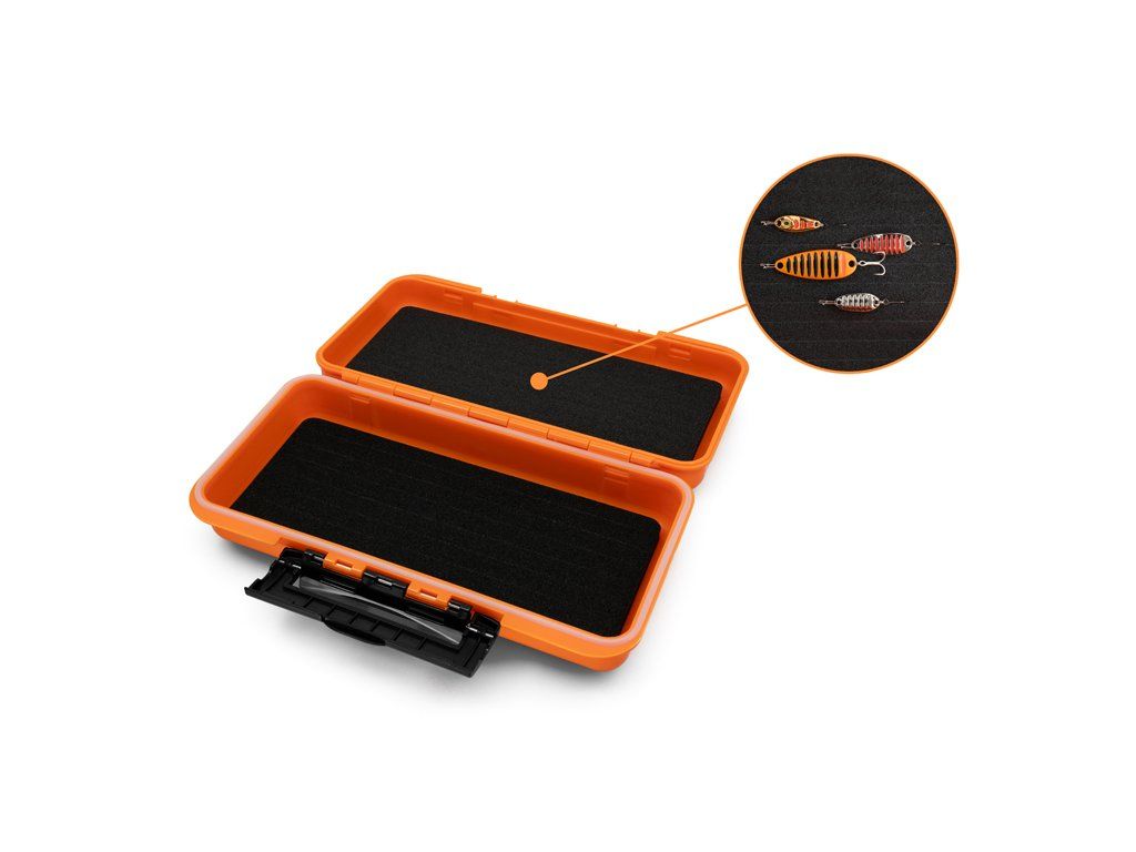 LureBOX QUICK je voděodolná krabice s kompaktními rozměry, vhodná pro uložení přívlačových nástrah. Velkou výhodou je vnitřní výplň z EVA pěny. V pěně jsou umístěny zářezy pro snazší uschování napíchnutých gumových nástrah na jigách. Stačí jednoduše jigový háček zatlačit do zářezu, nástraha zůstane nepoškozená a pěna ochrání hrot háčku proti otupení. Také je možné krabici použít jako odkládací prostor pro TWISTO systémy bez nechtěného motání. Velmi jednoduše lze v krabici uložit i samostatné háčky, díky čemuž budete mít vše potřebné připravené k lovu. Vyrobena je z oranžového neprůhledného plastu, který redukuje možnost koroze v případě uložení již použitých komponentů. Vybavena je praktickými externími klipy z plastu a těsněním proti vlhkosti. Technické parametry: Rozměr: 210x120x50mm Výplň krabice: EVA pěnaDoplňkové parametry