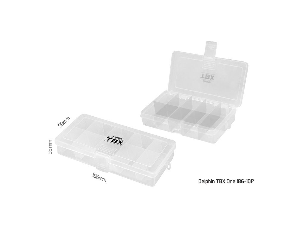 TBX ONE je řada multifunkčních krabiček určených pro uložení rybářského příslušenství. Vyrobené jsou z transparentního plastu, takže máte vždy dokonalý přehled o uložených věcech uvnitř krabičky. Řada TXB ONE je vybavena praktickými klipy z transparentního plastu. Technické parametre: Model: Delphin TBX One 132-10P Rozměr: 132x65x25mm Počet pevných přihrádek: 10 Rozměr přihrádky: 2,5x2,8x2,1cm Počet vkladatelných příčníků: 0 Model: Delphin TBX One 162-10P Rozměr: 162x86x35mm Počet pevných přihrádek: 10 Rozměr přihrádky: 3x4x2,9cm Počet vkladatelných příčníků: 0 Model: Delphin TBX One 186-10P Rozměr: 186x98x35mm Počet pevných přihrádek: 10 Rozměr přihrádky: 3,6x4,6x3,0cm Počet vkladatelných příčníků: 0 Model: Delphin TBX One 214-10P Rozměr: 214x113x41mm Počet pevných přihrádek: 10 Rozměr přihrádky: 4,1x5,4x3,5cm Počet vkladatelných příčníků: 0Doplňkové parametry