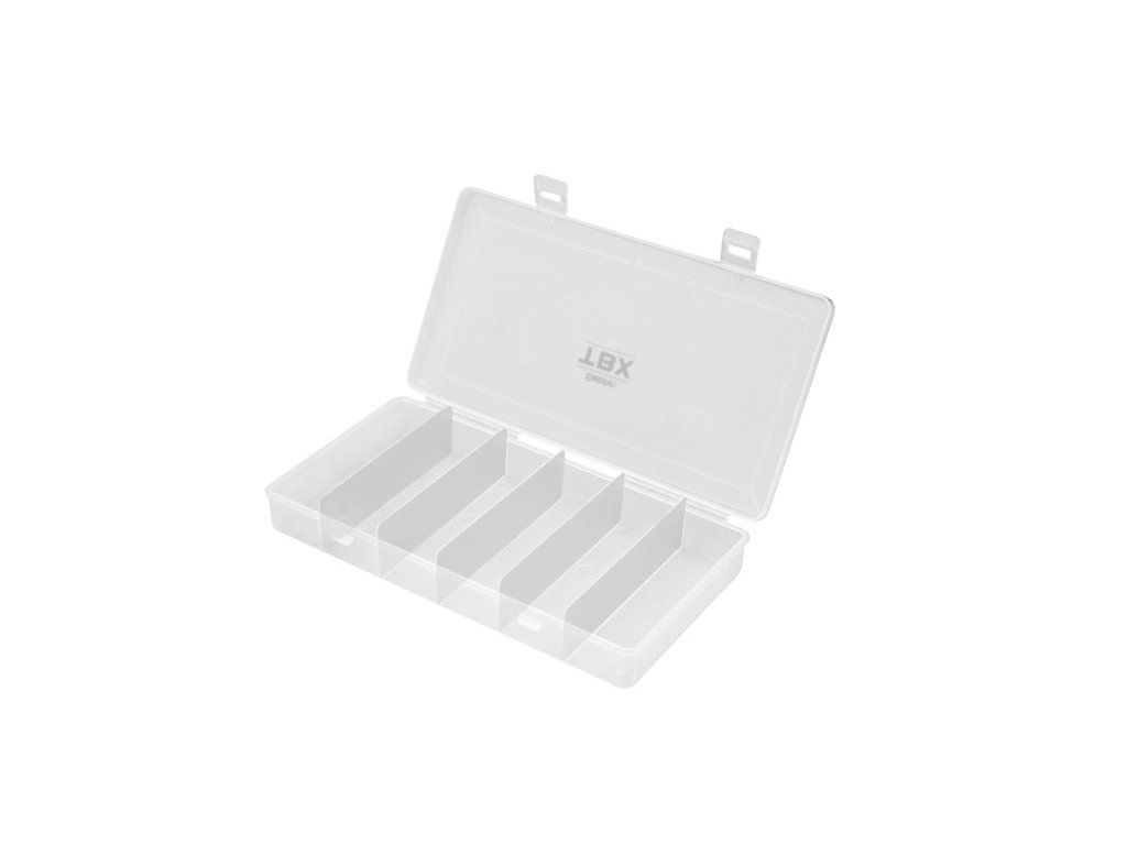 TBX ONE je rada multifunkčných krabičiek určených na uloženie rybárskeho príslušenstva. Vyrobené sú z transparentného plastu, takže máte vždy dokonalý prehľad o uložených veciach vo vnútri krabičky. Rada TXB ONE je vybavená praktickými klipmi z transparentného plastu. Technické parametre: Rozmer: 210x115x35mm Počet pevných priehradiek: 6 Rozmer priehradky: 3,5x10,5x2,9cm Počet vkladateľných priečinkov: 0Doplňkové parametry