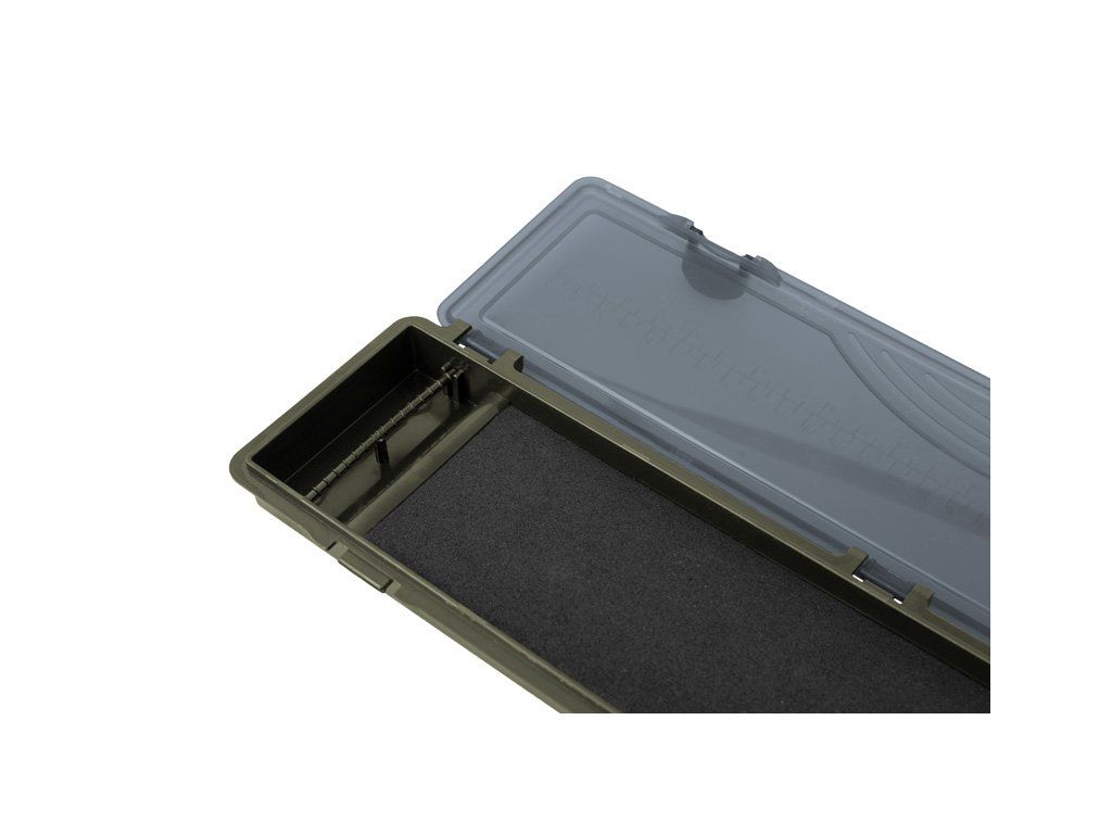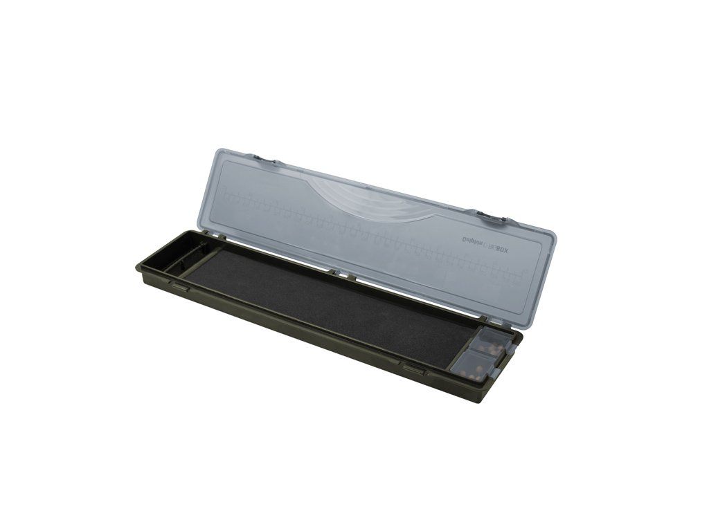 Velmi praktický pevný návazcovník Delphin C-RIGBOX na kaprařské návazce. Uvnitř se nachází plastový naklikávací díl na uchycení háčků a pěna s rozměry 260x69mm, do které je možné pomocí přiložených špendlíků uchytit konec montáže. Špendlíky se žlutou kulatou hlavičkou v počtu 20 kusů se nacházejí ve dvou uzavíratelných krabičkách. Návazcovník tmavé zelené barvy se uzavírá šedým průsvitným krytem na třech pantech se dvěma zámky. Na krytu se nachází praktické měřítko v centimetrech (30cm) a v palcích (12"). Cenově dostupný a velmi praktický kus výbavy nejen pro kapraře. Technické parametry: Rozměry: 348x85x25mm Kapacita pouzdra: 20ks návazců s max. délkou cca 30cm Hmotnost: 193gDoplňkové parametry