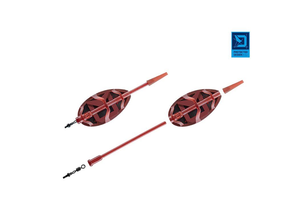 Špičkové method feederové krmítko, navržené vývojovým týmem značky Delphin. Už na první pohled se vyznačuje specifickým tvarem žeber, díky kterému krmivo během nahazování výborné drží na krmítku a po dopadu na dno se snáze uvolňuje. Velkou výhodou krmítka QUIX je možnost snadné výměny olověné části spolu s tělem. Umožňuje to vyjímatelná trubička a drážka na olověné části. Po vysunutí trubičky z těla krmítka jej stačí složit z vlasce a použít jiné s rozdílnou hmotností. Taková variabilita vám poskytne možnost přizpůsobení se různým podmínkám během lovu, bez nutnosti zdlouhavého převazování koncové sestavy. Tvar olověné zátěže spolu s výstupky zajišťuje nejen výborné rozložení hmotnosti, ale také perfektní stabilizaci na dně v lovném místě. Díky aerodynamickému tvaru a prodloužené trubičce je s krmítkem možné dosahovat velké vzdálenosti během nahazování. Punc originality dodává produktu typická bordó barva a černé závaží s červenými skvrnami. V základu je krmítko dodáváno s rychlovýměnným obratlíkem s pojistkou a gumičkou proti zamotání. Technické parametry: krmítko 55x30x25mm délka trubičky 85mm ROTECTED DESIGN - Tento produkt byl kompletně navržen designéry značky Delphin. Jeho design a technické řešení jsou natolik unikátní, že je registrován a chráněn na území celé Evropské unie.Doplňkové parametry