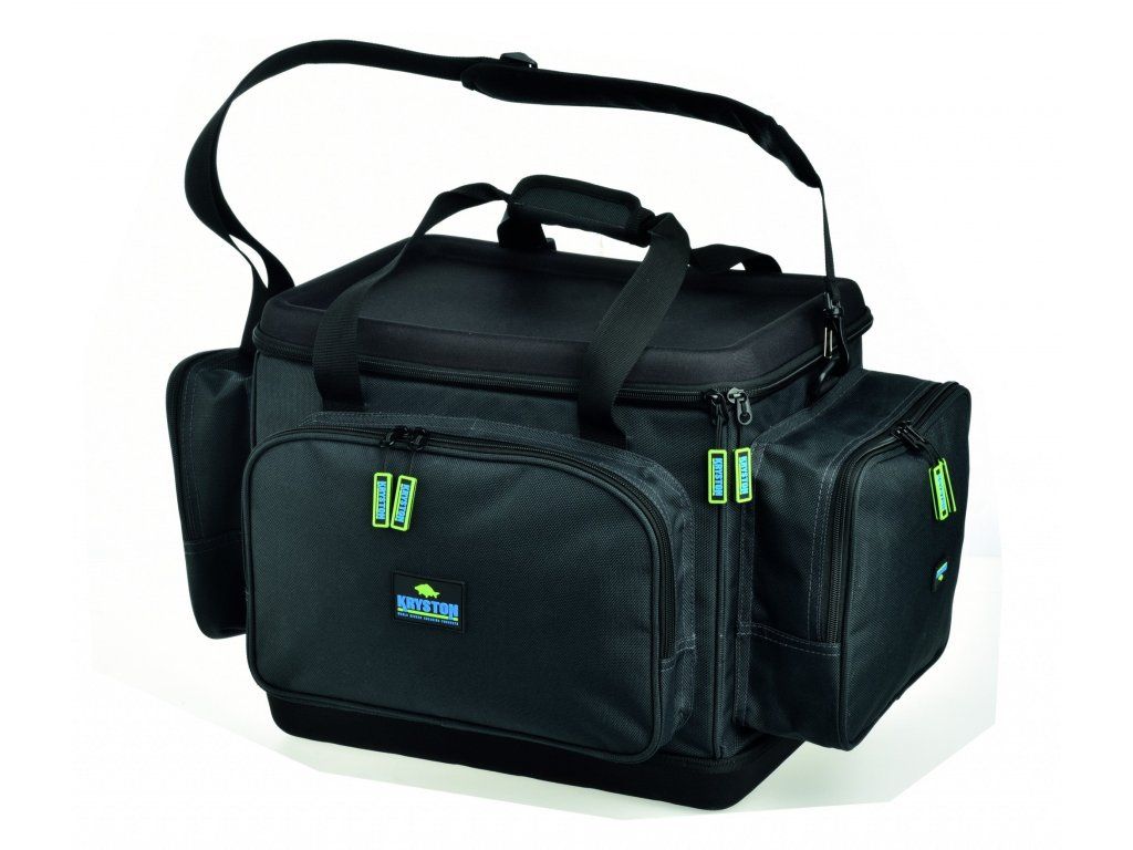 Kryston Carrier bag je univerzální středně velká taška, která pojme velkou část vaší výbavy. Je specifická tím, že vrchní část je dokonale vyztužena, takže lze používat jako bivy stolek. Podobným způsobem je zpevněno i dno, což zvyšuje celkovou pevnost tašky. Na bocích jsou dvě velké boční kapsy, ve předu jedna ještě větší, která má uvnitř flexibilní kapsy. Uvnitř hlavní části jsou přepážky umožňující oddělit jednotlivé části výbavy. Pod víkem je též síťová kapsa na zip. Taška má pevné uši na přenášení, stejně tak i polstrovaný popruh na rameno. Je ve stylové černé barvě s vnitřními modrými lemy. Robustní voděodolný materiál a silné kvalitní zipy s logem Kryston jsou samozřejmostí.Rozměry: 56x36x32 cm