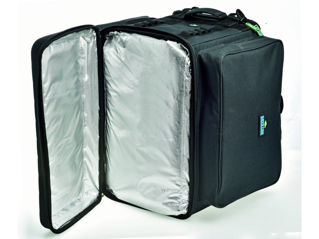 Kryston Trolley bag je taška a batoh zároveň. Má pevné uši pro přenášení v ruce, zároveň ale i silně polstrované popruhy pro přenášení na zádech. Perfektní varianta pro ty, kteří chtějí mít tašku se všemi jejími výhodami, ale zároveň ji občas potřebují přenášet jako batoh. Tomu odpovídá i ergonomické zpracování vrchní části, která při přenášení sedí na zádech. Trolley bag je velmi prostorný, zejména ve své hlavní části, která má navíc oddělující přepážku a síťovanou kapsu. Obrovská přední kapsa a dvě zadní naproti ní umožňují uložení mnoha částí výbavy. Zcela unikátní je spodek, kde uvnitř zpevněného dna najdete prostornou kapsu s termo izolační výplní. Na boku jsou též flexibilní úchyty. Trolley bag je ve stylové černé barvě s vnitřními modrými lemy. Robustní voděodolný materiál a silné kvalitní zipy s logem Kryston jsou samozřejmostí.Rozměry: 50x40x43 cm