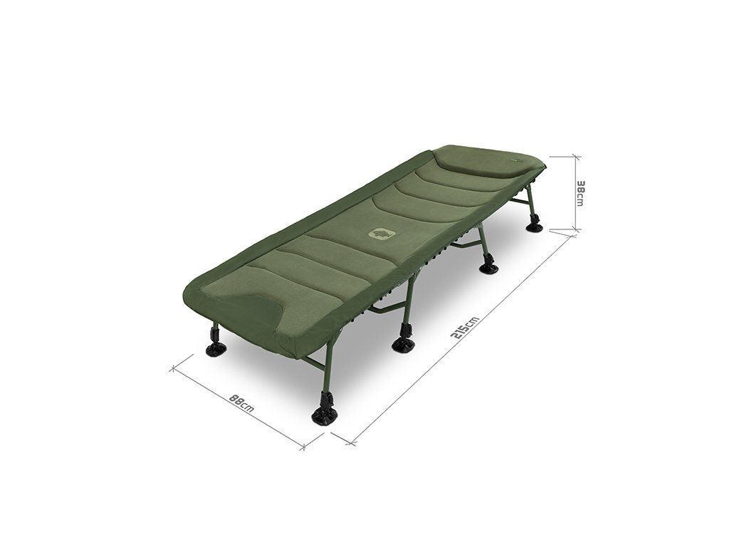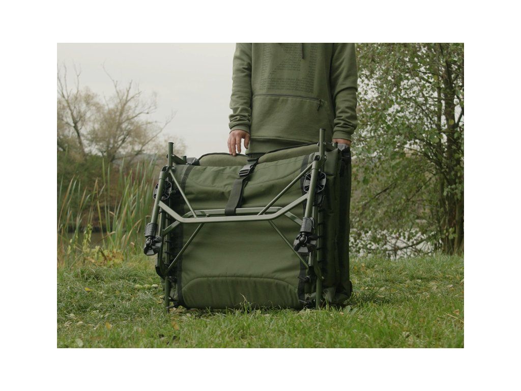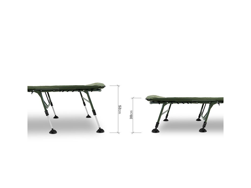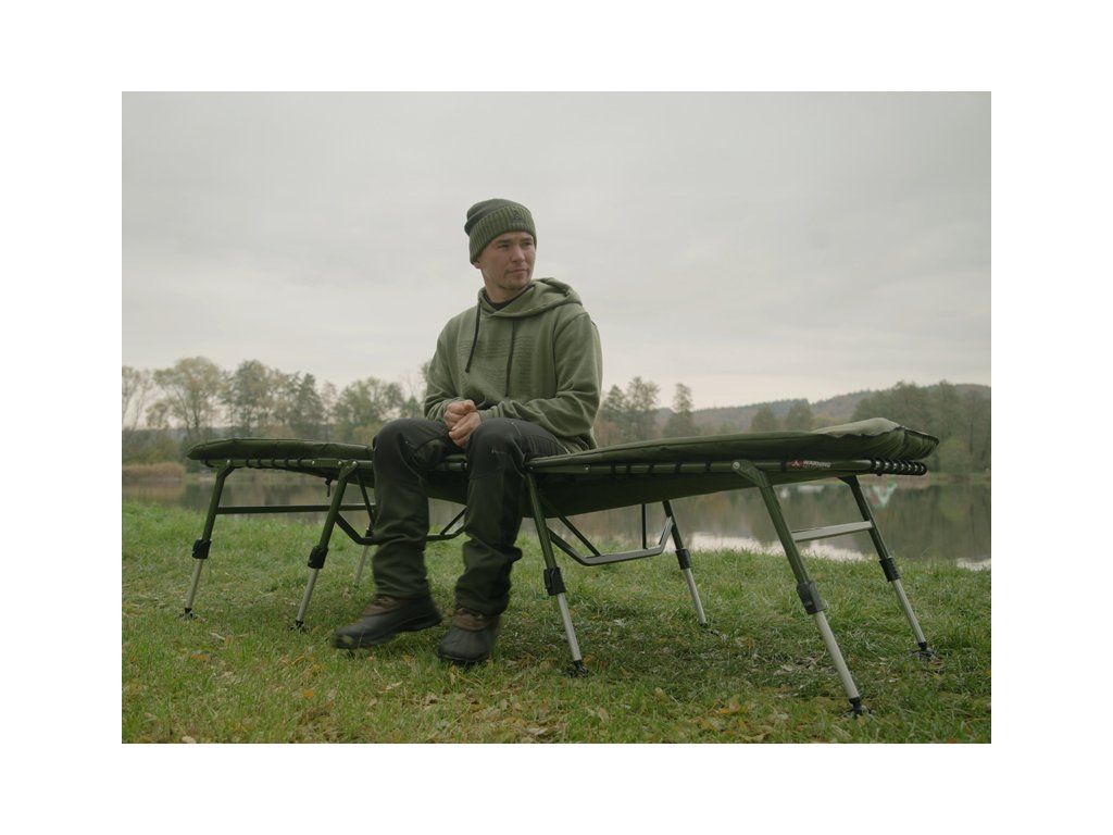 Lehátko Delphin ERGO CARP přináší maximální pohodlí, stabilitu a odolnost pro každého rybáře, který si potrpí na kvalitní odpočinek během rybaření. Díky rozšířeným rozměrům matrace poskytuje dostatek prostoru i pro vyšší uživatele, přičemž si díky osmi teleskopickým nohám zachovává vysokou stabilitu na jakémkoli terénu. Výhodou je také výška teleskopických nohou, která výrazně převyšuje standard – nejenže umožňují pohodlné vstávání a lehání, ale po jejich zvednutí vytvoří pod lehátkem prostorný úložný prostor. Lehátko je postaveno na pevné kovové konstrukci s vysokou nosností, která navzdory své odolnosti zůstává lehká a snadno přenosná. Na konstrukci se nachází osm výškově stavitelných nohou, které lze vysunout až do výšky 52 cm. Každá noha je vybavena širokou flexibilní patkou, která účinně zabraňuje zapadání do měkké půdy a zajišťuje stabilitu i na nerovném povrchu. Pár nohou pod hlavou je navíc opatřen zajišťovacím mechanismem, což usnadňuje rozložení lehátka a zároveň zabraňuje nechtěnému sklápění či posunu. Matrace je po celé délce potažena měkkým fleecem, který je příjemný na dotek a poskytuje příjemné teplo během chladných nocí. Obvod matrace tvoří odolná 600D látka v olivově zelené barvě, která zajišťuje vysokou životnost a chrání okraje před opotřebováním. V kombinaci s ergonomickým tvarováním a kvalitním prošíváním nabízí lehátko maximální komfort během odpočinku. Hlavová část je pro ještě větší pohodlí zesílená silnějším polstrováním. Na spodní straně matrace se po obvodu nacházejí napínací lana, která zajišťují rovnoměrné rozložení hmotnosti těla. V případě jejich uvolnění lze lana jednoduše dotáhnout a obnovit tak požadovanou tvrdost matrace. Nejvíce namáhané části na spodní straně jsou vyztuženy pogumovanou vrstvou, což výrazně přispívá k dlouhé životnosti lehátka i při častém používání v náročných podmínkách. Lehátko rozložíte i složíte během několika vteřin – rychle, jednoduše a bez námahy. Pro úplné zafixování během transportu jsme lehátko vybavili odnímatelnými, délkově nastavitelnými popruhy, které jsou zakončeny masivním plastovým klipem. Právě ty zamezí nechtěnému otevírání během transportu. Série ErgoCARP byla vyvinuta s cílem nabídnout co nejvyšší komfort za příznivou cenu. Vyznačuje se zejména použitím kvalitních materiálů a pohodlnou matrací, které jsou osazeny na pevné kovové konstrukci, která přispívá k dokonalé stabilitě. Společným znakem celé série je také zelená barva, doplněná naším originálním Outline logem kapra. Rozměry matrace: 215x85m Výška postele: 38cm Fixovatelný kloub: ne Vyztužení středové části: ne Hmotnost: 12kg Přepravní rozměry: 85x76x28cm Nosnost: 200kg Nosnost lehátka je velmi komplexní otázka. Odpověď je ovlivněna mnoha faktory, jako například rovinatost a stabilita podkladu, na kterém lehátko rozkládáme a také samotné fyzické parametry člověka, který do něj sedá. Statická/nehybná nosnost bývá vždy vyšší, než dynamická (při sedání uživatele, z jaké výšky a jak plynule si sedá). Zjednodušeně lze uvést, že v ideálním případě je nosnost lehátka Delphin ErgoCARP přibližně 200 kg.Doplňkové parametry