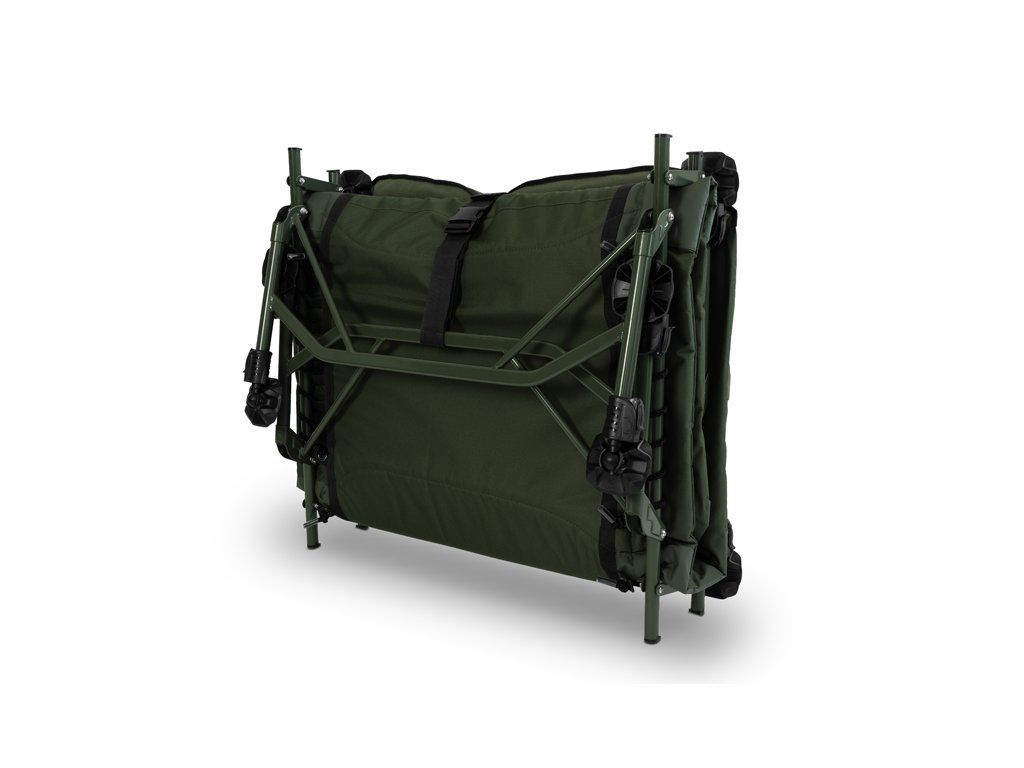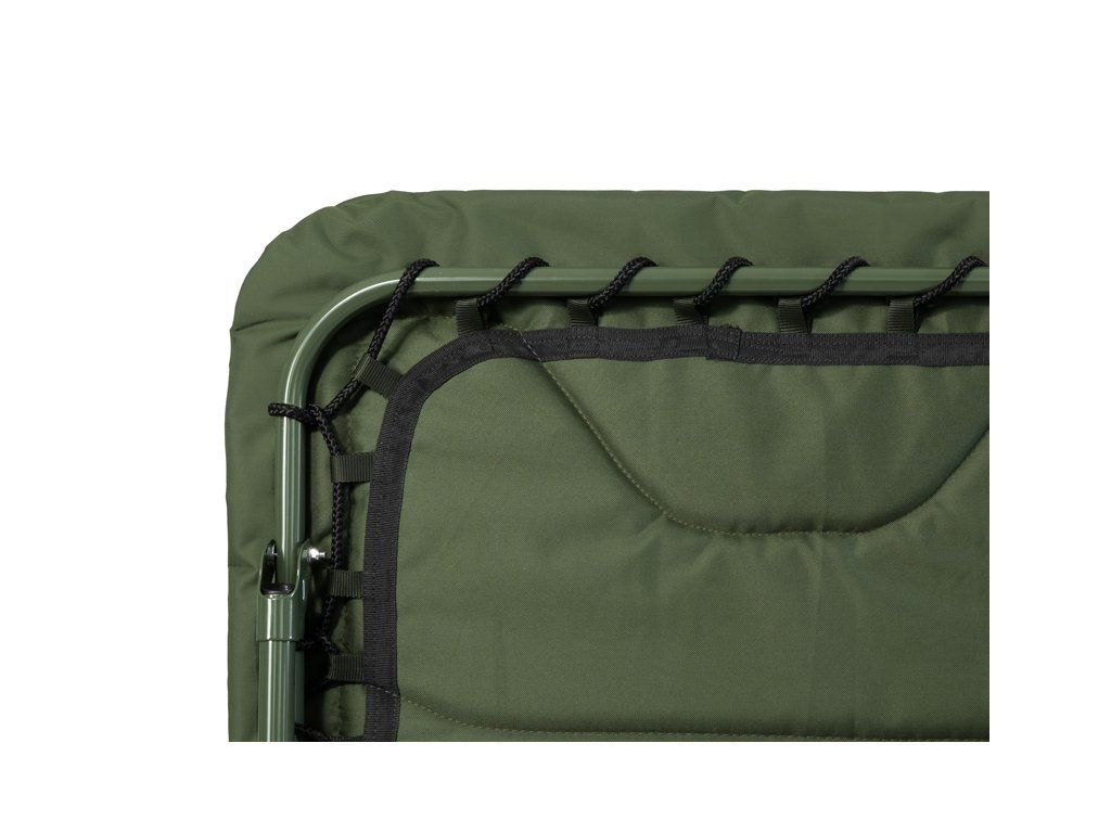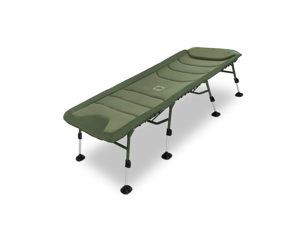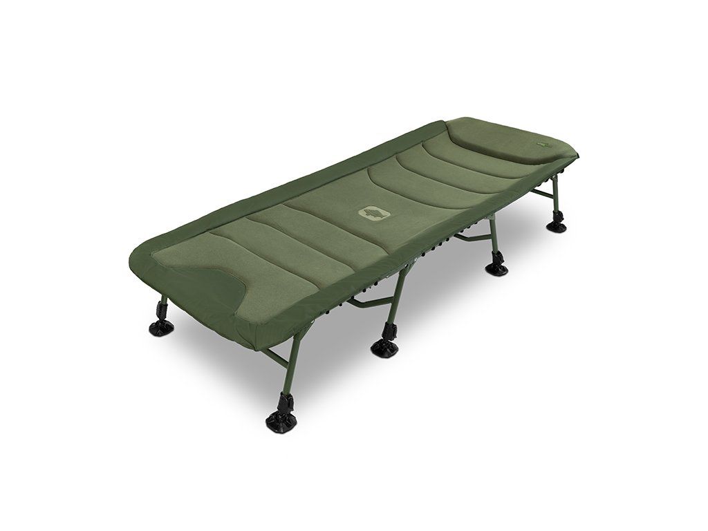 Lehátko Delphin ERGO CARP přináší maximální pohodlí, stabilitu a odolnost pro každého rybáře, který si potrpí na kvalitní odpočinek během rybaření. Díky rozšířeným rozměrům matrace poskytuje dostatek prostoru i pro vyšší uživatele, přičemž si díky osmi teleskopickým nohám zachovává vysokou stabilitu na jakémkoli terénu. Výhodou je také výška teleskopických nohou, která výrazně převyšuje standard – nejenže umožňují pohodlné vstávání a lehání, ale po jejich zvednutí vytvoří pod lehátkem prostorný úložný prostor. Lehátko je postaveno na pevné kovové konstrukci s vysokou nosností, která navzdory své odolnosti zůstává lehká a snadno přenosná. Na konstrukci se nachází osm výškově stavitelných nohou, které lze vysunout až do výšky 52 cm. Každá noha je vybavena širokou flexibilní patkou, která účinně zabraňuje zapadání do měkké půdy a zajišťuje stabilitu i na nerovném povrchu. Pár nohou pod hlavou je navíc opatřen zajišťovacím mechanismem, což usnadňuje rozložení lehátka a zároveň zabraňuje nechtěnému sklápění či posunu. Matrace je po celé délce potažena měkkým fleecem, který je příjemný na dotek a poskytuje příjemné teplo během chladných nocí. Obvod matrace tvoří odolná 600D látka v olivově zelené barvě, která zajišťuje vysokou životnost a chrání okraje před opotřebováním. V kombinaci s ergonomickým tvarováním a kvalitním prošíváním nabízí lehátko maximální komfort během odpočinku. Hlavová část je pro ještě větší pohodlí zesílená silnějším polstrováním. Na spodní straně matrace se po obvodu nacházejí napínací lana, která zajišťují rovnoměrné rozložení hmotnosti těla. V případě jejich uvolnění lze lana jednoduše dotáhnout a obnovit tak požadovanou tvrdost matrace. Nejvíce namáhané části na spodní straně jsou vyztuženy pogumovanou vrstvou, což výrazně přispívá k dlouhé životnosti lehátka i při častém používání v náročných podmínkách. Lehátko rozložíte i složíte během několika vteřin – rychle, jednoduše a bez námahy. Pro úplné zafixování během transportu jsme lehátko vybavili odnímatelnými, délkově nastavitelnými popruhy, které jsou zakončeny masivním plastovým klipem. Právě ty zamezí nechtěnému otevírání během transportu. Série ErgoCARP byla vyvinuta s cílem nabídnout co nejvyšší komfort za příznivou cenu. Vyznačuje se zejména použitím kvalitních materiálů a pohodlnou matrací, které jsou osazeny na pevné kovové konstrukci, která přispívá k dokonalé stabilitě. Společným znakem celé série je také zelená barva, doplněná naším originálním Outline logem kapra. Rozměry matrace: 215x85m Výška postele: 38cm Fixovatelný kloub: ne Vyztužení středové části: ne Hmotnost: 12kg Přepravní rozměry: 85x76x28cm Nosnost: 200kg Nosnost lehátka je velmi komplexní otázka. Odpověď je ovlivněna mnoha faktory, jako například rovinatost a stabilita podkladu, na kterém lehátko rozkládáme a také samotné fyzické parametry člověka, který do něj sedá. Statická/nehybná nosnost bývá vždy vyšší, než dynamická (při sedání uživatele, z jaké výšky a jak plynule si sedá). Zjednodušeně lze uvést, že v ideálním případě je nosnost lehátka Delphin ErgoCARP přibližně 200 kg.Doplňkové parametry