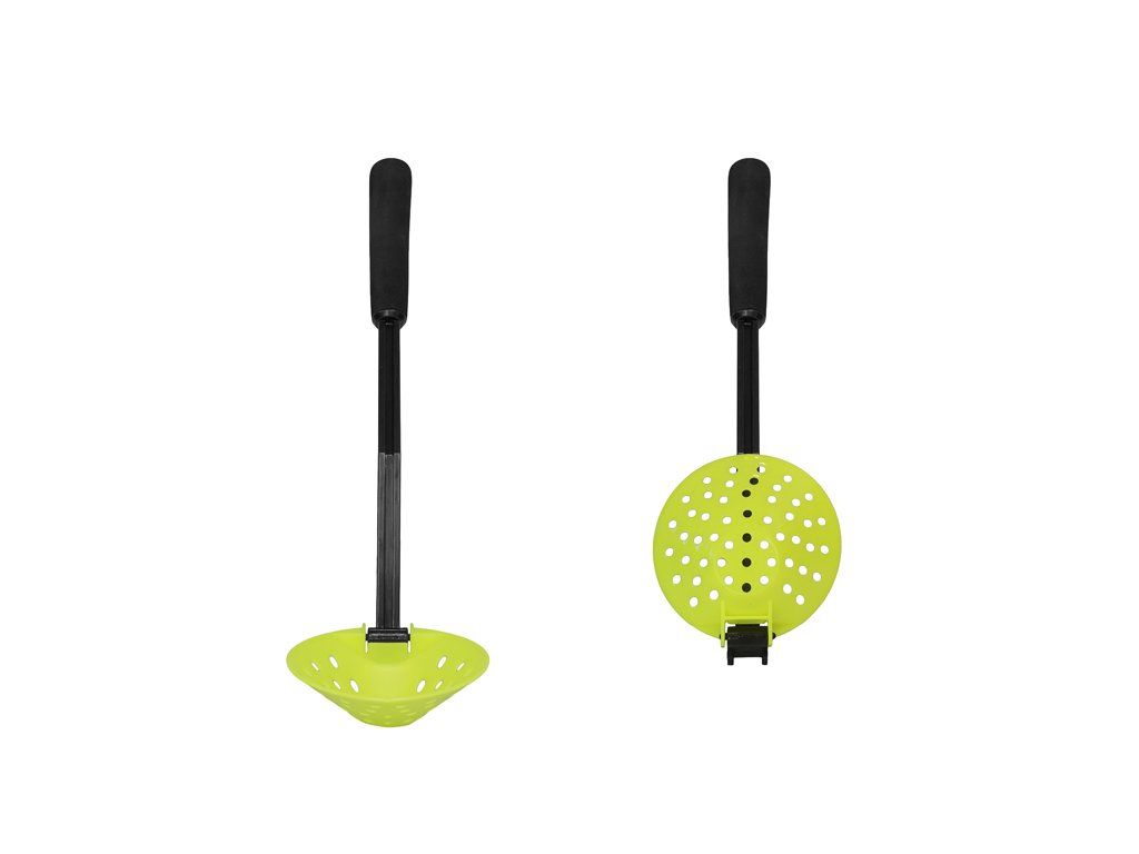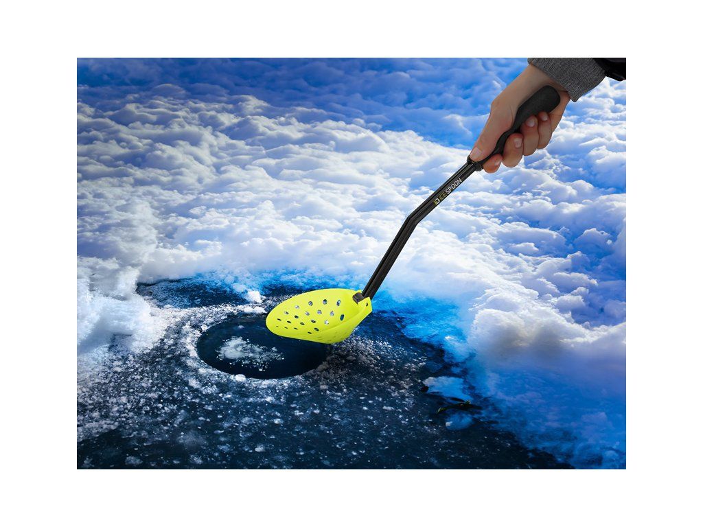 Ve velmi chladném počasí je nejdůležitější zachovat suché zejména ruce. Proto při lovu na dírkách je neodmyslitelnou součástí výbavy lžíce na vybírání ledové drti z neustále zamrzající dírky. Rukojeť o délce 36cm je osazena příjemnou EVA pěnou, aby se minimalizoval kontakt se studeným povrchem. Pro spodní část naběračky jsme zvolili reflexní barvu, aby byla viditelná i za zhoršených podmínek. Díky sklápěcímu mechanismu je velmi praktická a nezabere zbytečný prostor v tašce.Doplňkové parametry