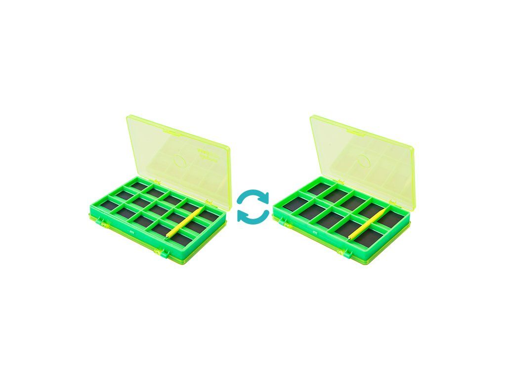 Pomůcka, bez které se neobjede žádný rybář. To je magnetická krabička Delphin MAGBOX, kde uložíte všechny drobné kovové součásti vaší výbavy, samozřejmě nejhojněji zastoupené právě rybářskými háčky. Krabička je oboustranná, na jedné straně se nachází 10 větších (2,5x2,2cm) přihrádek a na druhé 15 menších (2,1x1,3cm). Využitelné ale i pro obratlíky či karabinky. Na základě velikosti či jiných preferencí si jej můžete jednoduše roztřídit do jednotlivých přihrádek, odkud se zaručeně nerozsypou. Navíc se mezi sebou netupí! Budou na svém místě držet až do momentu, kdy se je rozhodnete pomocí přiloženého nástroje použít. Krabička je ve výrazném barevném provedení, a tak nedojde ani k její ztrátě a všechno důležité máte vždy po ruce. Technické parametry: Rozměr: 12,5x8x2cm Počet přihrádek: 15+10Doplňkové parametry