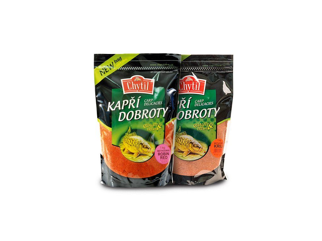 - Krill - obsahuje velmi atraktivní a výraznou moučku z Krillu ( mořský živočich). Dále také klasickou rybí moučku, vaječný mléčný ptačí zob a další atraktanty. Celoroční použití "!