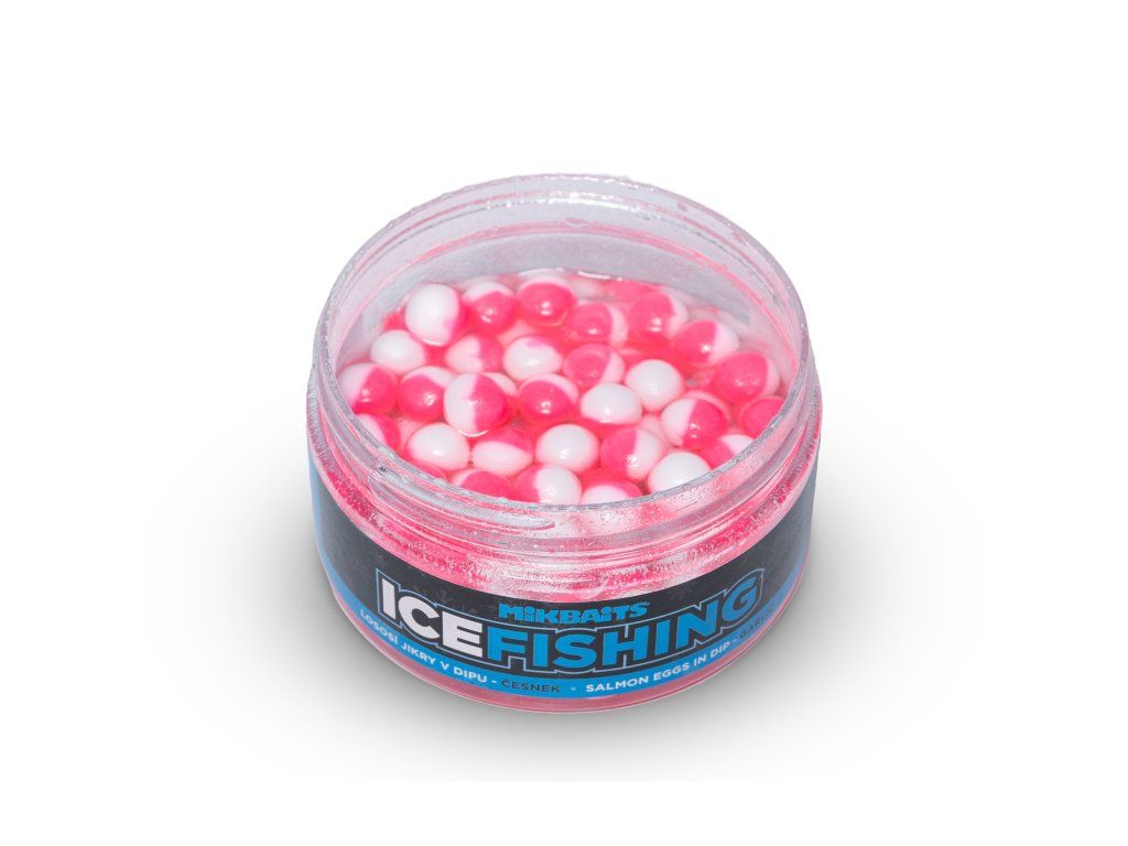 Mikbaits Ice fishing pstruh řada Lososí jikry v dipu Česnek