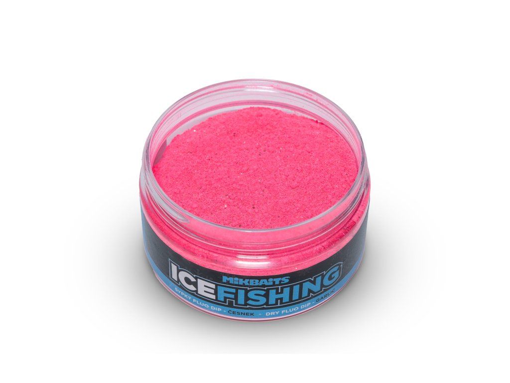 Sypký fluo dip Ice Fishing je výborný zejména k při chytání na dírkách. Obsahuje krom jiného i stříbrné glitry, které ještě zvyšují jeho viditelnost. Lze s ním zatraktivnit jak Lososové jikry, tak i jakékoli jiné nástrahy. Stačí mokrou nástrahu obalit v dipu, optimálně alespoň 2x.