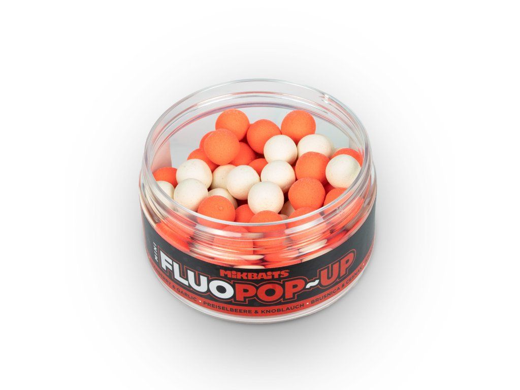 Mikbaits Mini Plovoucí fluo boilie 100ml Brusinka Česnek