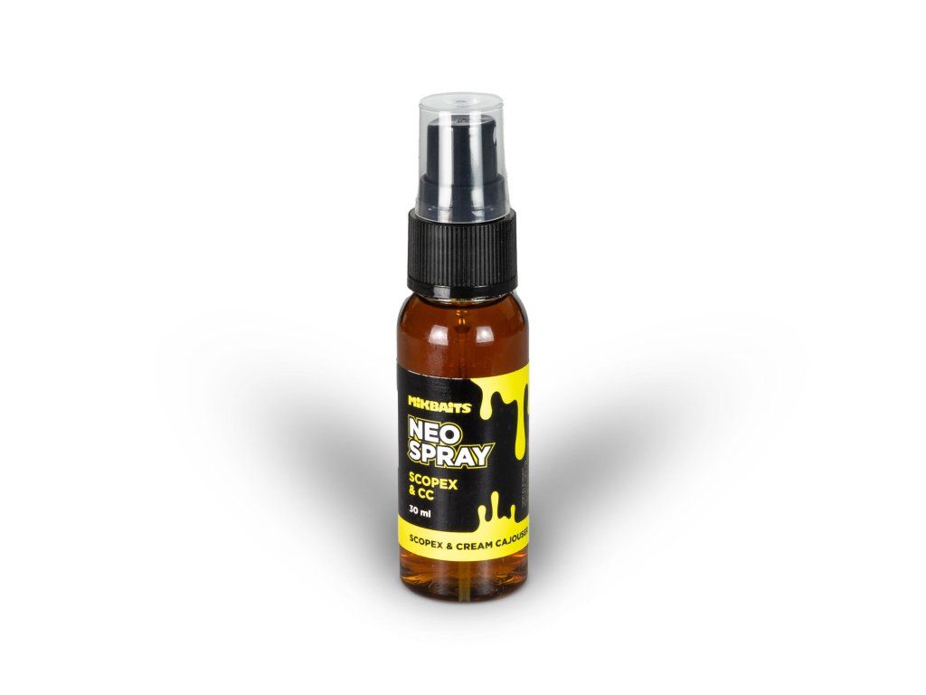Neo spray je vysoce koncentrovaný tekutý postřik, kde jsou krom esence i koncentrovaná sladidla a chuťové stimulátory. Je určený zejména na zatraktivnění Fluo pop-up, Ronnie pop-up, pěnových Zig-up. Lze s ním i oživovat starší nástrahy. Neo spray je okamžitě nastartuje do původního stavu. Stačí zlehka postříkat a nechat v kelímku alespoň desítky minut absorbovat. Neo spray lze použít i na jiné nástrahy, jako je standardní boilie, pelety, partikl, rohlíkové boilie, extrudy a další. V těchto případech stačí nástrahu postříkat krátce před náhozem a nechat zlehka zaschnout.