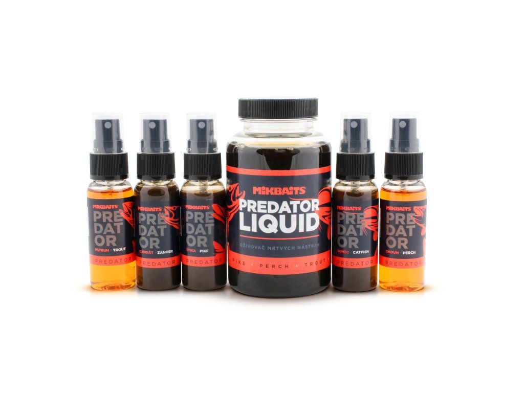 PREDATOR Spray je určený na postřik umělých (gumové nástrahy, ale i střapce třpytek a woblerů atd), mrtvých (rybky) i jiných (pelety,…) nástrah s účinností na jednotlivé druhy ryb – Štika, Candát, Okoun, Sumec a Pstruh. Doporučujeme postřik nechat chvilku zavadnout, nebo aplikovat předem. Lákavý signál pak vydrží více náhozů. S produkty PREDATOR učiníte své návnady ještě atraktivnější, neboť jim dodáte silnou vůni a velkou přitažlivost díky aminokyselinám a dalším složkám, které je tvoří.
