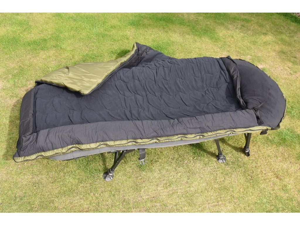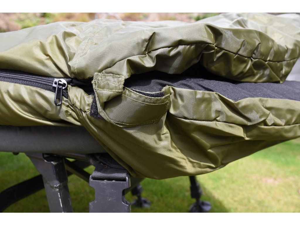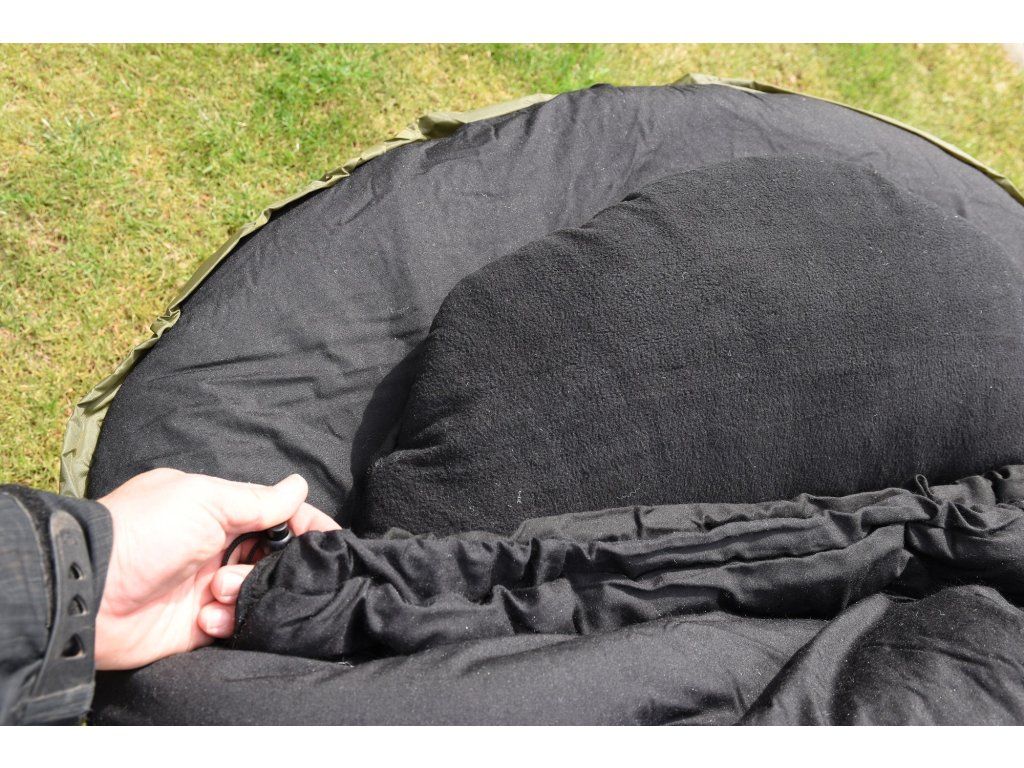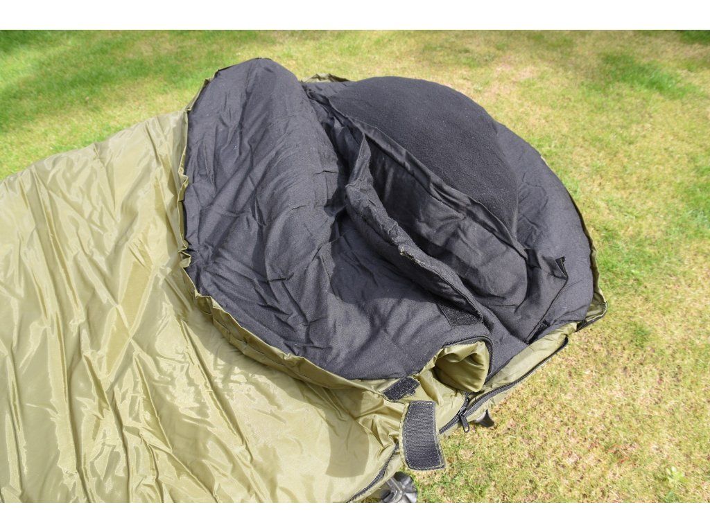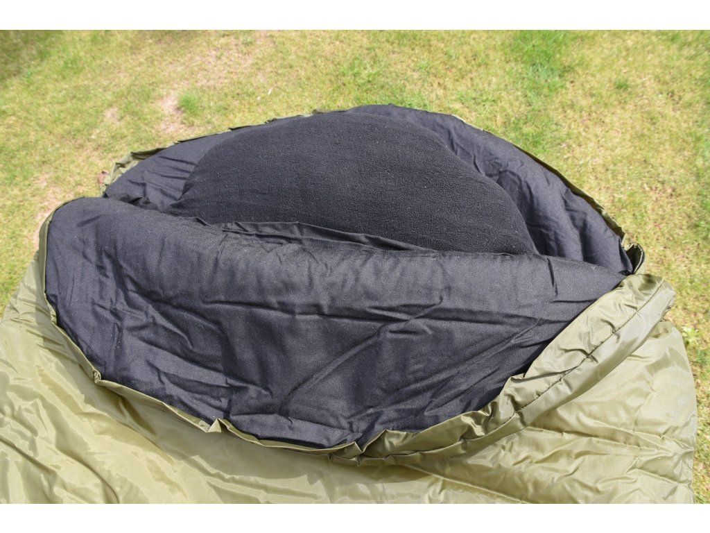 Spacák Fatty Boy (5 season) je nepochybně nejteplejší rybářský spacák, jaký můžete kde sehnat. Má plnění 800g/m dutého vlákna + odepínací fleecovou termo vložku, což dodává komfort i ve velmi chladných dnech. V teplém období naopak působí jako termoska, drží vaši teplotu. Nemusíte tak mít obavu, že byste se v létě ve spacáku potili. Co víc, fleecová odepínací vložka sama o sobě může být použita jako lehčí letní spacák, nebo ji při chladnějších večerech použijete na záda jako deku. Součástí balení je samostatný obal na tuto termovložku, tj můžete ji mít zvlášť nebo ji v určitých obdobích s sebou nenosit, čím se výrazně zmenší objem spacáku. Další vychytávkou je unikátní otočný polštář, který umožňuje dát zip spacáku na libovolnou stranu. Vždy tak budete mít zip tím směrem, kterým potřebujete. Kvalitní rychlozipy, těsnící léga, stahovací límec, oboustranné návleky na lehátko jsou samozřejmostí. Rozměry spacáku jsou 230 (200 po ramena) x 90cm. Na vrchu je vodoodpudivý olivově zelený materiál, uvnitř podšívka z bavlny a fleecová termovložka. Hlavní obal spacáku je větší, tak abyste do něj spacák snadno dostali a při skladování přes zimu nebyly dutá vlákna tak stlačená, což zvyšuje jejich životnost. Dá se ale kompresně stáhnout na menší rozměr.