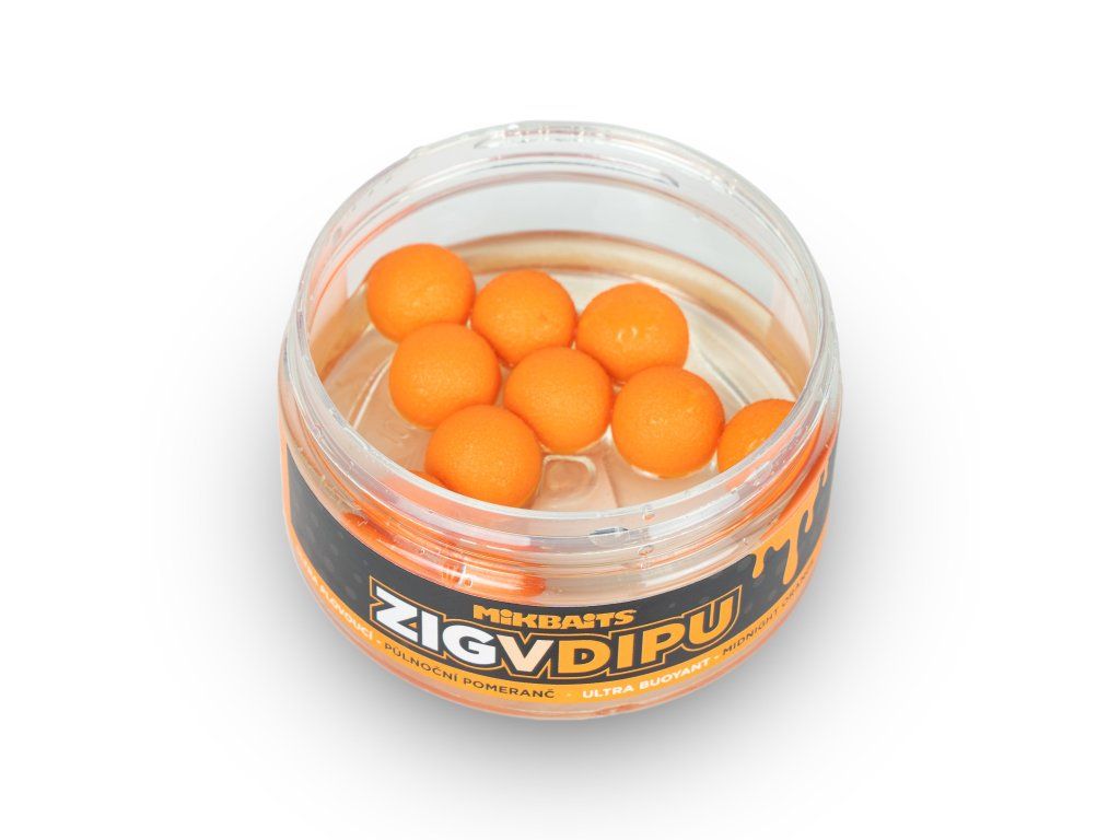 Mikbaits Zig ultra plovoucí v dipu Půlnoční pomeranč 15mm