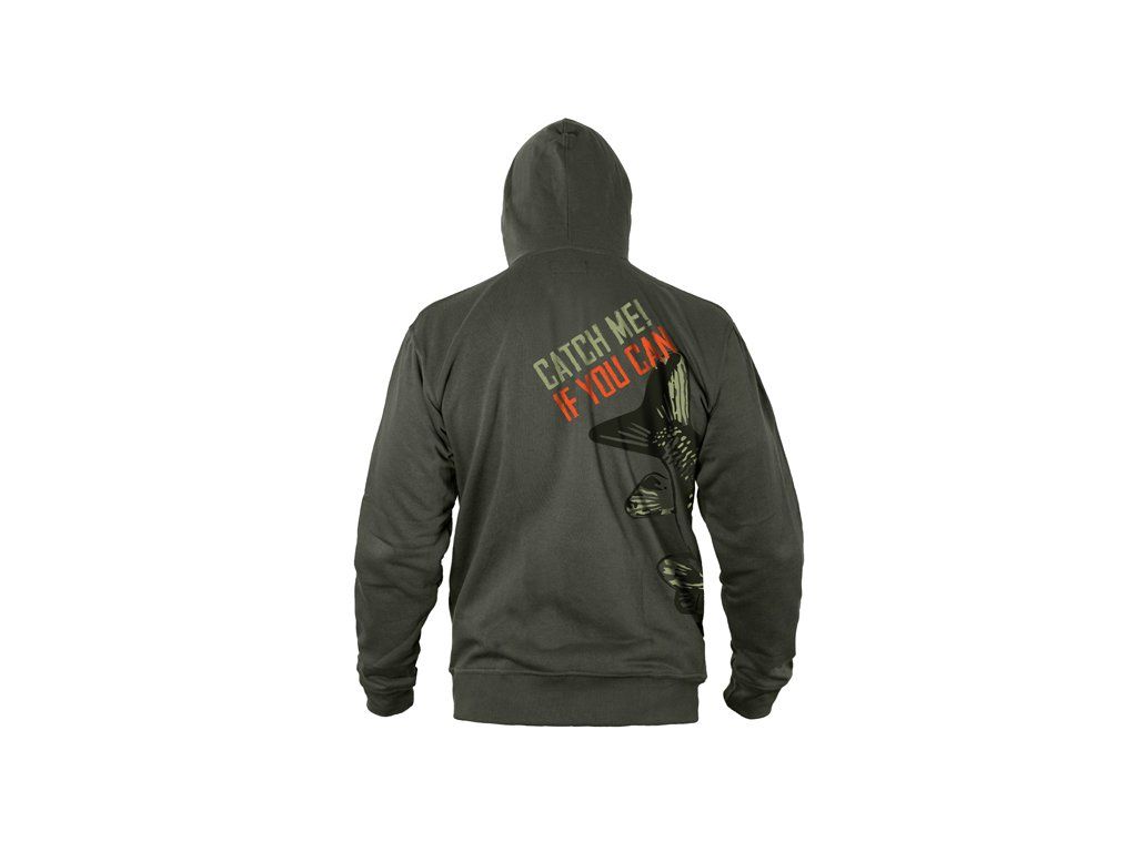 Druhá generace kaprařských mikin Catch me s naším vlastním a kompletně obnoveným barevným designem. Série CATCH ME IF YOU CAN (chyť mě pokud to dokážeš) s vyobrazením kapra je nevšední kousek do vašeho, nejen kaprařského šatníku. Malba kapra prochází kolem dokola celého trupu v jeho spodní části. Kapr je zobrazen jako skica či malba při zachování všech důležitých detailů. Ryba je zachycena v situaci, kdy se blíží k hrsti boilies, což je právě ten moment, na který všichni na břehu čekáme. Mikina je designována do tmavě zelené barvy s efektní oranžovou a světle zelenou grafikou. Vybraná tkanina je vysoké kvality, stejně jako použitý barevný tisk. S oblečením CATCH ME IF YOU CAN budou všichni vědět s kým mají co dělat! Nabízíme je v široké škále velikostí, ze kterých si určitě vyberete. Technické parametry: Materiálové složení: 60% Polyester, 40% BavlnaDoplňkové parametry