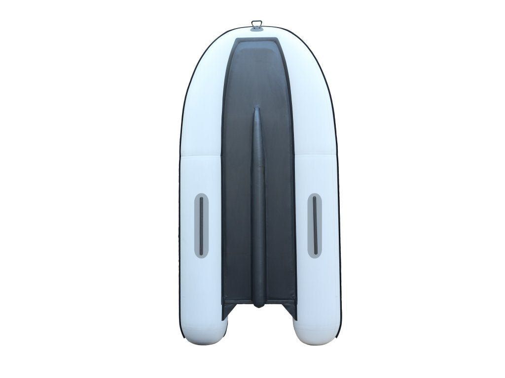 KB TRIMARAN jsou zcela unikátní čluny s kýlem a vysokotlakým nafukovacím dnem s dokonalými jízdními vlastnostmi. Mají jedinečný design, unikátní konstrukci a zcela nadstandardní aerodynamiku, díky níž jsou na vodě rychlejší (až o 1,5 násobek rychlosti klasického člunu) a lépe ovladatelné. Výrazně se to promítá i do nižší spotřeby paliva u benzínových motorů či delší životnosti baterií u elektromotorů. Zcela nadstandardní 50 cm průměr válců dává lodi obrovskou stabilitu i v nejobtížnějších podmínkách. Hodí se zejména na větší vody a delší výpravy, kdy oceníte jejich stabilitu, vnitřní prostor a jízdní vlastnosti. Jedinečná je konstrukce kýlu, který není uvnitř lodi, jak je běžné, ale v samostatné komoře pod lodí. K tomu dvě další vodící lišty na spodku válců. Mají též několik na první pohled neviditelných vychytávek, které výrazně zamezují stříkání vody dovnitř při rychlé jízdě nebo ve velkých vlnách. Na výrobu byl použit prvotřídní PVC materiál o síle 1200g/m2, spoje jsou svařované. Podlaha je nafukovací vysokotlaká. Na bocích je protioděrová lišta. Obě lavičky mají dokonalé polstrovaný potah, který lze snadno nasadit i sundat. Vpředu lodi je jedno a vzadu dvě ergonomické madla na přenášení člunu. Na vrchu člunu je záchytný popruh a 9 rychloupínacích držáků Fasten, díky nimž snadno připnete sondu na sonar, obrazovku sonaru, držák prutu, držák na kamery, mobily atd či kotvící háčky a rolny. Upevňují se do nich i havlinky k veslům. V případě, že jezdíte jen s motorem, jsou na vnitřních bocích lodi úchyty na upevnění vesel, tak aby zbytečně nepřekážely, ale měli jste je v případě potřeby stále po ruce. KB se vyrábí v šedé barvě. Člun je dodáván s přenosnou taškou, vesly, dvěma lavičkami, nafukovací pumpou a opravnou sadou v tubě. 5 let záruka na materiál.KB350