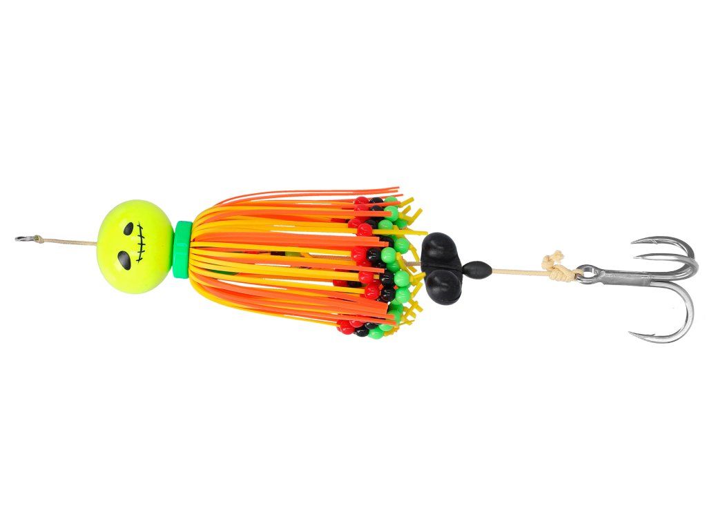 BOGEY - sumcová nástraha určená k lovu s vábničkou. Vzhled a zvuk lákají sumce k útoku. Účinná na těžkých lovištích. Vybavena korálky, rolničkou, pletenou šňůrou a trojháčky. Pro vyšší atraktivitu lze na trojháčky nasadit rousnice.Doplňkové parametry