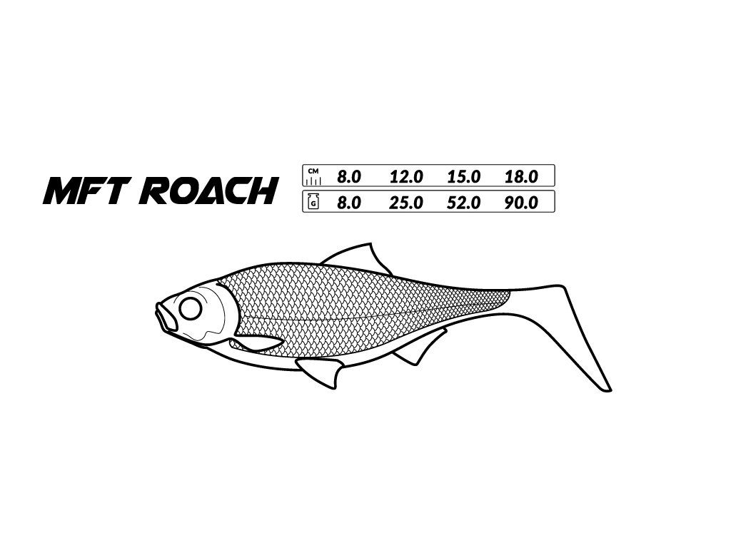 Velmi realistická imitace plotice se všemi detaily. Originální zabarvení vytvořené na základě zkušeností všech členů MFT, spojené se silným chvěním těla a komplexním působením ocasu, zaručuje úspěch na jakékoli vodní ploše.Doplňkové parametry