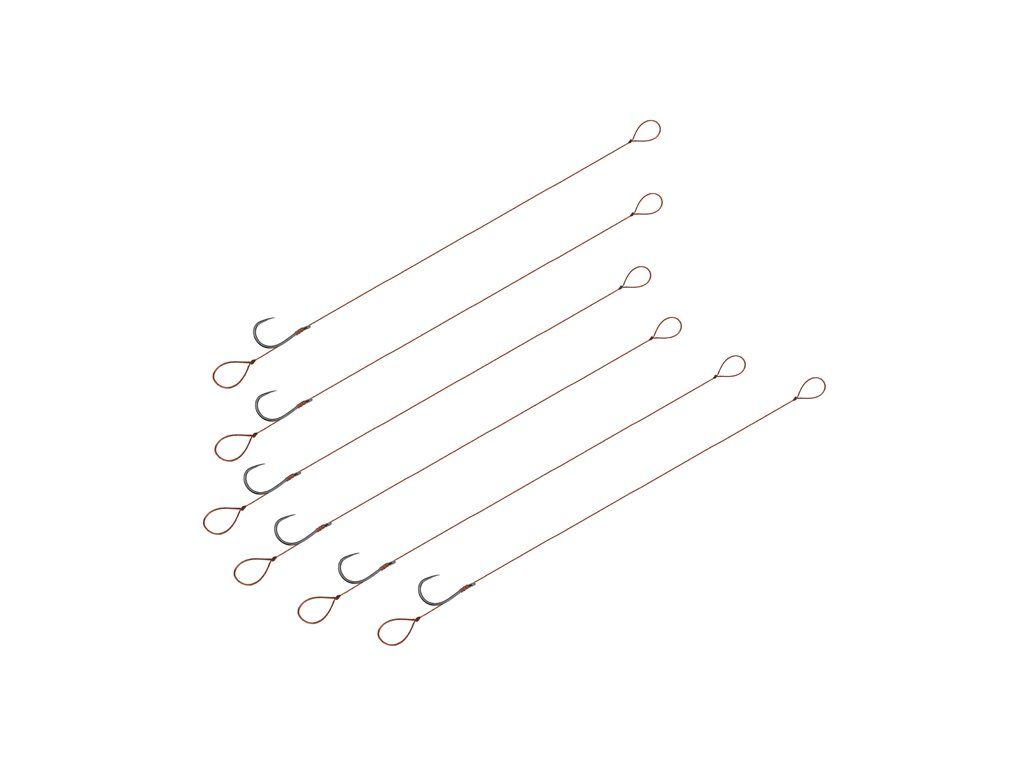 Delphin Proxi 8 LOOP zhotoven ze šňůry Proxi 8 je feederový návazec, který je pod háčkem ukončený smyčkou. Jsou to velmi praktické hotové návazce, které umožní rybářům okamžitý lov, či výměnu návazce bez zdlouhavého vázání. Na návazce je použit kvalitní háček bez protihrotu. Technické parametry: Šňůra: Delphin PROXI 8, 0.10mmDoplňkové parametry