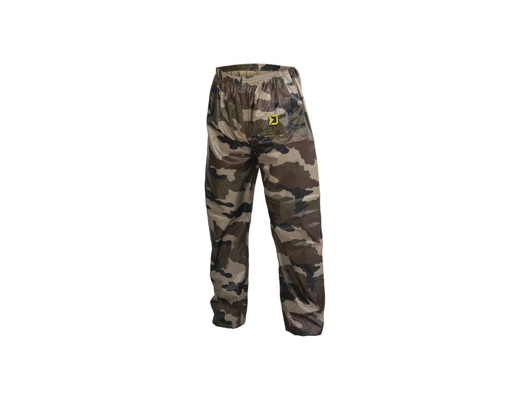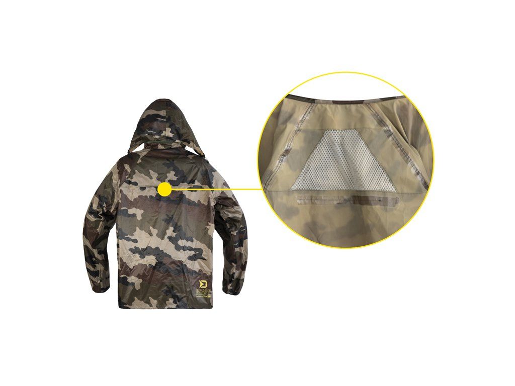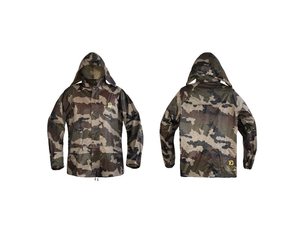 Do deštivých dnů je zde nepromokavý komplet Delphin PROOF, který vás dokonale ochrání před nepřízní počasí a překvapí svými kompaktními transportními rozměry. Je vyroben z voděodolné pogumované tkaniny s podlepenými švy a maskáčovým vzorem. Bunda Zapínání bundy je zajištěno pomocí odolného zeleného zipu překrytého lemem tkaniny se zapínáním na 4 plastové cvoky, což zvyšuje ochranu před deštěm. Kapuce je vybavena zatahováním na šňůrku, takže je možné přizpůsobit si ji podle svých potřeb a navíc si ji můžete srolovat a zazipovat do límcového prostoru. Límec je vyvýšen pro lepší překrytí krku a šíje a opatřený dalšími dvěma cvoky na připnutí kapuce. Konce rukávů mají přidané gumičky zabudované do jejich vnitřku, pro lepší utěsnění před vodou. V oblasti mezi lopatkami se z vnitřní strany nachází také síťka určená pro lepší odvětrávání. Spodní část bundy PROOF je opatřena šňůrkou s plastovými koncovkami pro zatažení pod úrovní pasu. Na obou stranách se nacházejí rozměrné kapsy s efektivním překrytím. Kalhoty Disponují pružnou gumičkou v oblasti pasu díky čemuž se snadno a rychle v případě potřeby oblékají. Celkový střih kalhot je volný a tudíž si je můžete natáhnout i na zimní oblečení. Spodní část je opatřena cvoky, pomocí kterých je lze zúžit. Oblek je balen v praktickém pouzdru se zipem vhodným pro transport v suchém či mokrém stavu, čímž ochrání ostatní věci před nechtěným namočením. Technické parametry: Materiálové složení: 100% Polyester s PVC povrchem Transportní rozměry: 32x27x5cmDoplňkové parametry