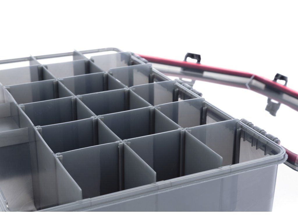 Velká, hluboká krabička je ideální pro ukládaní delších a větších krmítek a dalšího feederového příslušenství. Vlastnosti: • Určeno pro feederové rybáře • Odolný plast • Průhledné víko Gunsmoke • Vodotěsné • Pohodlné a snadné uspořádání • Nastavitelné přepážky • Skvělé pro uložení feederového vybavení doma nebo u vody • Rozměry: 355 x 230 x 92 mmDoplňkové parametry