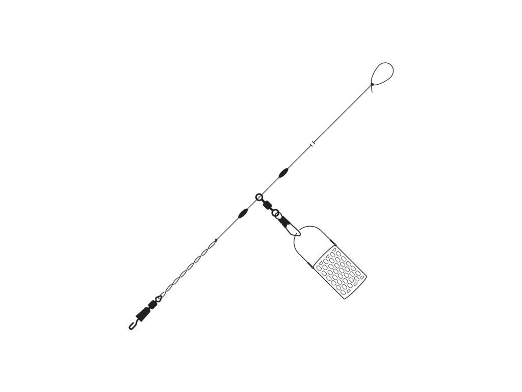 Návazec s bezpečnostní karabinou pro upevnění krmítka a rychlovýměnným obratlíkem na otočném rameni pro připevnění návazce s háčkem. Díky dvěma zarážkám můžete tuto sestavu používat na pevno nebo jako polo-průběžnou. Obvykle se používá s otevřeným krmítkem. Vlastnosti: • Připraveno k použití • Přesně uvázaný • Kvalitní monofil • Obratlíky a zarážky Connex • 2ks v baleníDoplňkové parametry