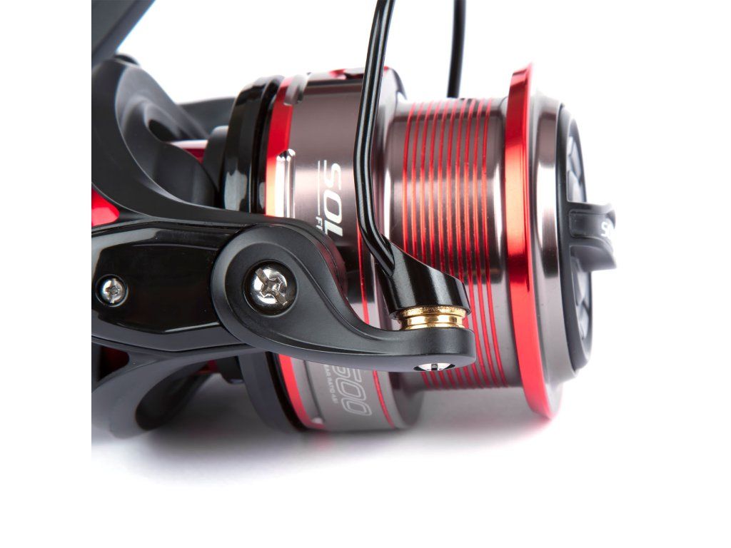 Solus Distance Feeder 6500 je robustní, velkokapacitní feederový naviják určený pro odhozy na střední až dlouhé vzdálenosti. Z bezpečnostních důvodů je naviják Solus Distance Feeder vybaven systémem ochrany vlasce, který zabraňuje zamotání vlasce pod cívku. Lehký křížový oscilační systém S-curve uvnitř navijáku nabízí množství výhod. Díky němu je naviják překvapivě lehký, umožňuje dokonalé navíjení šnůry i vlasce na středně mělkou feederovou cívku a je výjimečně pevný, aby vydržel i hrubější zacházení. Naviják Solus Distance Feeder je vybaven systémem rychlého odhozu pro rychlé a přesné ovládání při zdolávání větších ryb. Vlastnosti: • Konstrukce navijáku na dlouhé vzdálenosti • Převod: 4,7:1 • 5+1 kuličková ložiska • Vícedisková nastavitelná přední brzda • Systém ochrany vlasce • Středně mělká hliníková feederová cívka • Kapacita vlasce: 190 m/0,25 mm • Návin na jednu otočku: 93 cm • Vysoce odolné lehké grafitové tělo a vyvážená konstrukce rotoru • Oscilační systém S-Curve • Dva kulaté kovové klipy na vlasec • Uzavřený systém jednosměrné spojky • Dostatečně velká rolna • Titanová ochrana proti zamotání a kroucení vlasce • Oboustranná hliníková CNC klička • Pohodlná rukojeť ve tvaru TDoplňkové parametry