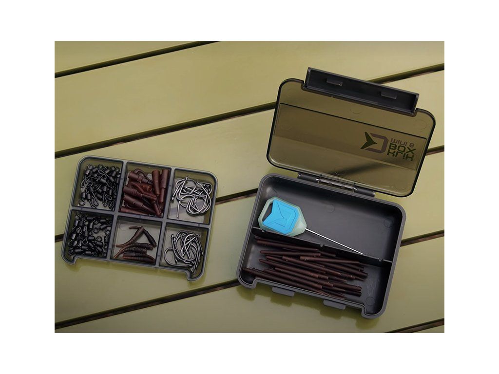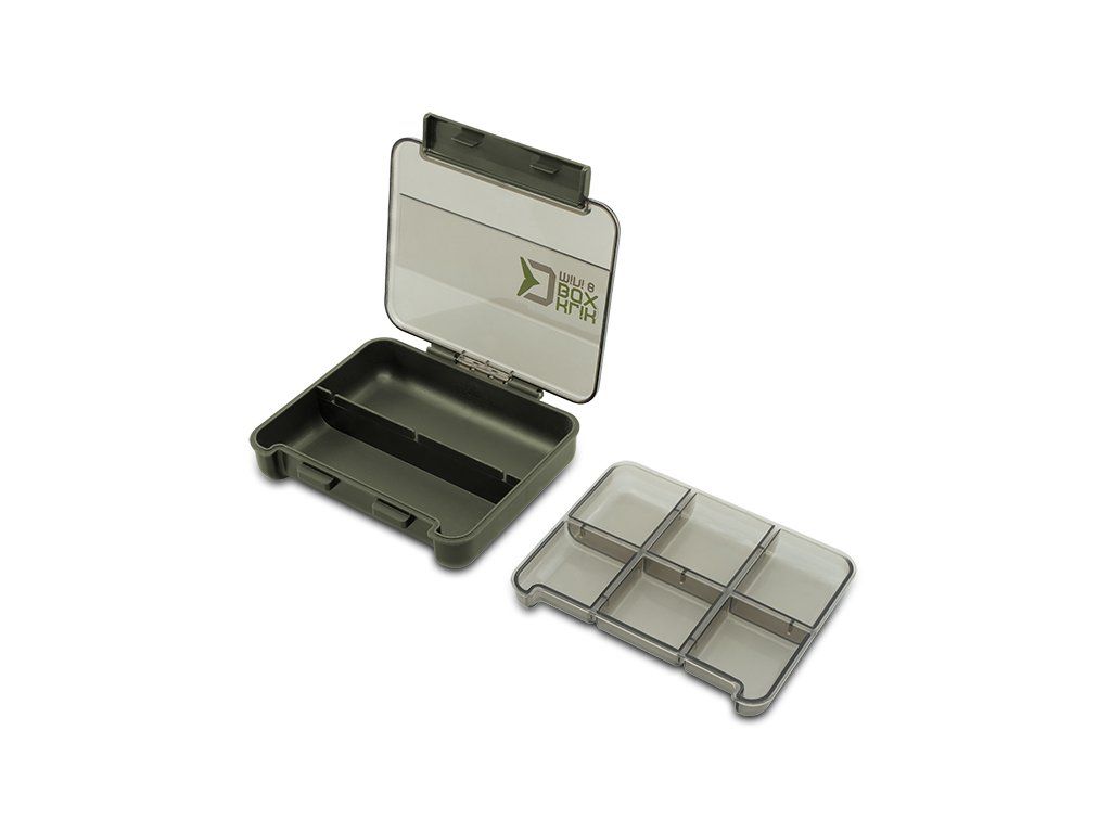 Mini 8 je nejkompaktnějším organizérem ze série plastových boxů s názvem KlikBOX. Jeho vnitřní prostor umožňuje přehledné uložení bižuterie či jiných drobných komponentů vaší výbavy. Uvnitř se nacházejí dvě pevné přihrádky podlouhlého tvaru, vhodné například na gumičky proti zamotání či smršťovací bužírky. Velkou výhodou je vyjímatelná část s dalšími šesti přihrádkami, které se dokonale hodí pro uložení obratlíků, háčků, rovnátek a jiných prvků určených pro přípravu koncové montáže. Je vyroben z velmi odolného plastu a k jeho komfortnímu otevírání a uzavření poslouží podlouhlý pevný klip. KlikBOX Mini 8 svým rozměrem dokonale zapadne do největšího organizéru ze série KlikBOX a to konkrétně KlikBOX Mega. Technické parametry: Vnější rozměr krabice: 10x8,5x2cmDoplňkové parametry