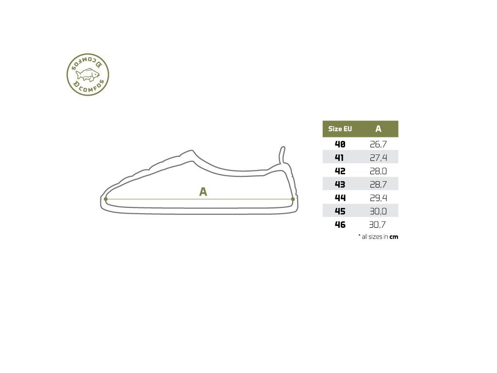 Pantofle Comfos v originální kamufláži C2G jsou navrženy speciálně pro milovníky rybolovu, kempování, turistiky a pro všechny, kteří se rádi pohybují v přírodě. Tyto pantofle jsou lehké, kompaktní a snadno je přibalíte do vašeho zavazadla, což z nich činí ideálního partnera na dobrodružství mimo civilizaci. Pantofle jsou navrženy s důrazem na pohodlí, o což se stará pohodlná stélka, která poskytuje úlevu vašim unaveným nohám po dni plném aktivit. Odolná a robustní pogumovaná podrážka poskytuje dostatečný grip s terénem, což je neocenitelné v případě potřeby pohybu mimo stan či bivak, například během neočekávaného záběru ryby. Povrch pantoflí je snadno omyvatelný a odolný vůči špíně a prachu. Kromě všech zmíněných výhod jsou pantofle velmi stylové, a díky modernímu designu se v nich budete cítit dobře v přírodě, ale také při relaxu v kempu.Doplňkové parametry