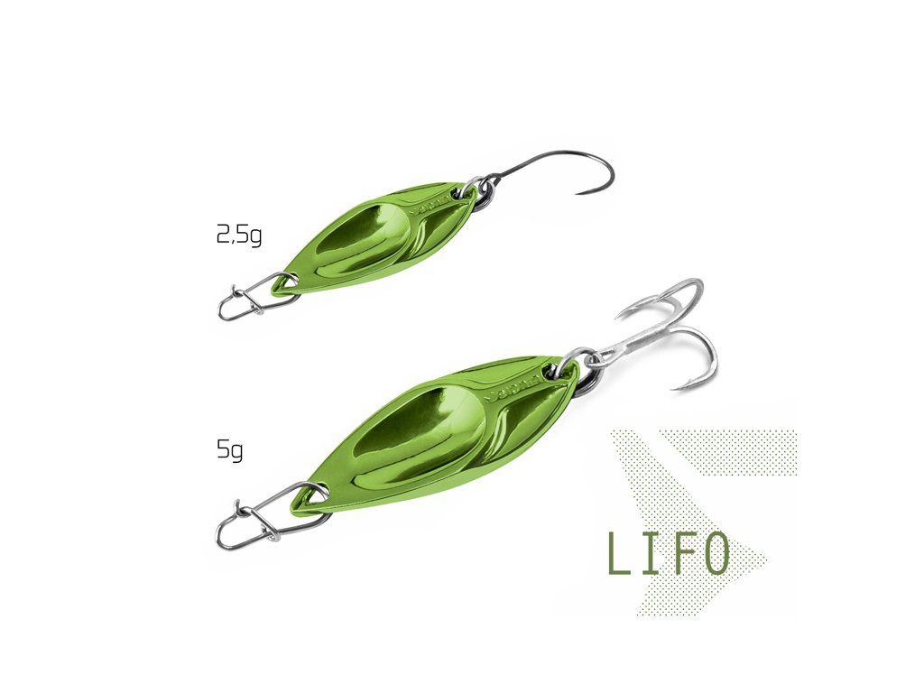Plandavky série Delphin LIFO jsou ideálními umělými nástrahami pro revíry typu Trout Area. Jejich tělo je vyrobeno ze zinkové slitiny. Jsou vybaveny kvalitním jednoháčkem BOMB! HardLure s protihrotem a karabinkou FASTLOCK MICRO SNAP, které jsou zárukou, že o svůj úlovek nepřijdete. Kromě pstruhů nimi nepohrdnou ani menší dravé ryby na jezerech či vodních tocích. To, že jsou velmi lákavé a dravci se jimi nechají snadno vyprovokovat, je vidět už na první pohled. Plandavky LIFO mají těla ve tvaru lístku, které dokonale imitují živou nástrahu. Technické parametry: Model: LIFO Hmotnost: 5g , 2,5g Délka těla plandavky: 3,7cm , 2,7cm 2,5g model - osazený jednoháčkem 5g model - osazen trojháčkemDoplňkové parametry