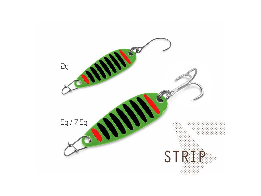 Plandavky série Delphin STRIP jsou ideálními umělými nástrahami pro revíry typu Trout Area. Jejich tělo je vyrobeno ze zinkové slitiny. Jsou vybaveny kvalitním jednoháčkem BOMB! HardLure s protihrotem a karabinkou FASTLOCK MICRO SNAP, které jsou zárukou, že o svůj úlovek nepřijdete. Kromě pstruhů nimi nepohrdnou ani menší dravé ryby na jezerech či vodních tocích. To, že jsou velmi lákavé a dravci se jimi nechají snadno vyprovokovat, je vidět už na první pohled. Plandavky STRIP mají pruhy, které dokonale imitují živou nástrahu. Technické parametre: Model: STRIP Hmotnosť: 7,5g , 5g , 2g Dĺžka tela plandavky: 5cm, 4,4cm , 3,2cm 2g model - osazený jednoháčkem 5g / 7,5g model - osazen trojháčkemDoplňkové parametry