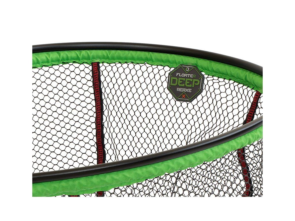 Plovoucí hlava podběráku oválného tvaru ze série REAXE disponující lehkým a pevným hliníkovým rámem černé barvy. Síťka FloateR DEEP je celá pogumovaná, tím pádem nenasává okolní vodu, snadno a rychle na vzduchu vysychá. Je také hlubší než standardní síťky a tím pádem se do ní vejdou větší úlovky a eliminuje se riziko vypadnutí ryby z podběráku. Pod rámem je navíc prošita výraznou zelenou látkou po celém obvodu pro zvýšení pevnosti a odolnosti. Jelikož hlava plave na hladině, můžete si ji pohodlně položit na vodu než se vám podaří rybu vyčerpat a navést k podběráku. Designově je laděna do černo-zelené barvy a tím skvěle doplňuje feederovou řadu produktů REAXE. Hlava se ideálně hodí pro kombinaci s rukojeťmi REAXE, ale díky univerzálnímu závitu je vhodná pro většinu prodávaných rukojetí na trhu. Technické parametry: Pogumování: Ano Velikost očka: 8mm x 8mmDoplňkové parametry