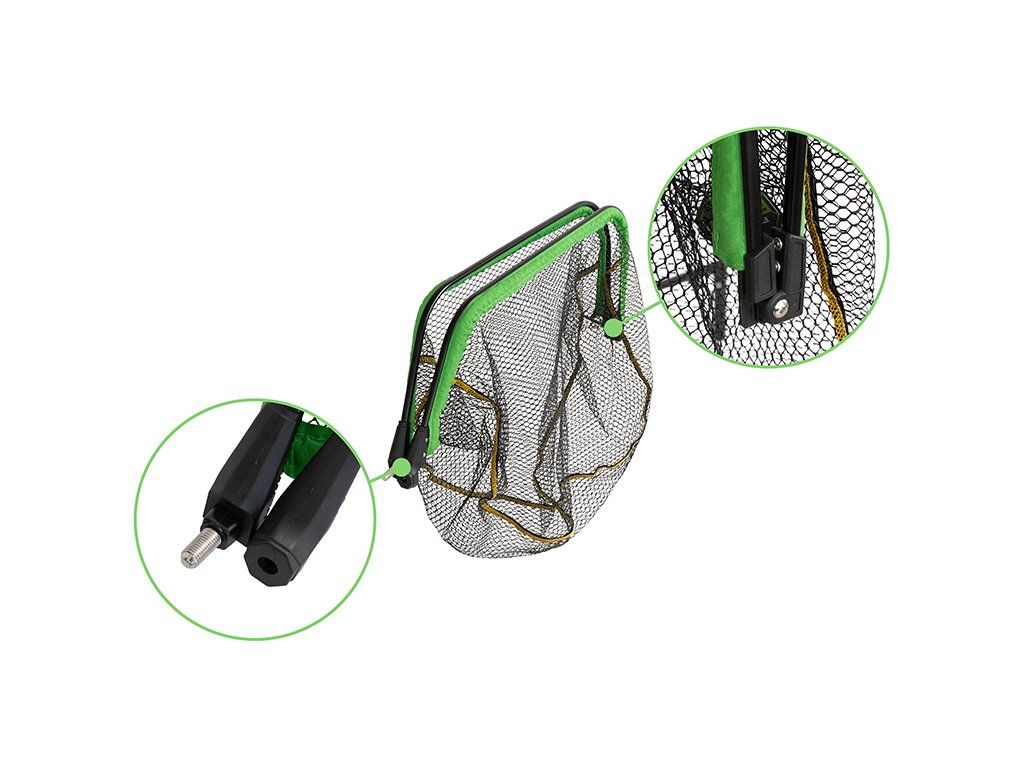Plovoucí hlava podběráku čtvercového tvaru ze série REAXE disponující lehkým a pevným hliníkovým rámem černé barvy. Síťka FloateR FoldCUBE je celá pogumovaná, tím pádem nenasává okolní vodu, snadno a rychle na vzduchu vysychá. Pod rámem je navíc prošita výraznou zelenou látkou po celém obvodu pro zvýšení pevnosti a odolnosti. Jelikož hlava plave na hladině, můžete si ji pohodlně položit na vodu než se vám podaří rybu vyčerpat a navést k podběráku. Designově je laděna do černo-zelené barvy a tím skvěle doplňuje feederovou řadu produktů REAXE. Rám této hlavy je navíc skládatelný na polovinu a tím pádem zabere ve vaší výbavě méně místa než standardní podběrákové hlavy. Hlava se ideálně hodí pro kombinaci s rukojeťmi REAXE, ale díky univerzálnímu závitu je vhodná pro většinu prodávaných rukojetí na trhu. Technické parametry: Pogumování: Ano Velikost očka: 8mm x 8mmDoplňkové parametry