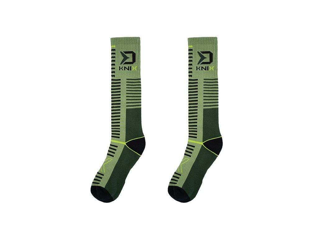 Termo podkolenky poskytující tepelný komfort během chladných podzimních a zimních dnů strávených u vody nebo na toulkách přírodou. Jsou vyrobeny z hřejivé a pružné tkaniny, která se skvěle přizpůsobí tvaru chodidla a netlačí na lýtkách. V horní části se nachází praktická gumička zajišťující fixaci podkolenek v požadované pozici. Barevná kombinace zelených odstínů v kombinaci s černými a fluo žlutými prvky vytváří efektní design, vyladěný velkým logem Delphin a nápisem KNIX. Dodáváme je ve třech rozměrech se širokým rozpětím velikostí, díky čemuž si každý vybere pro sebe tu ideální. Technické parametry: Materiálové složení: 85% bavlna, 10% elastan, 5% polyesterDoplňkové parametry