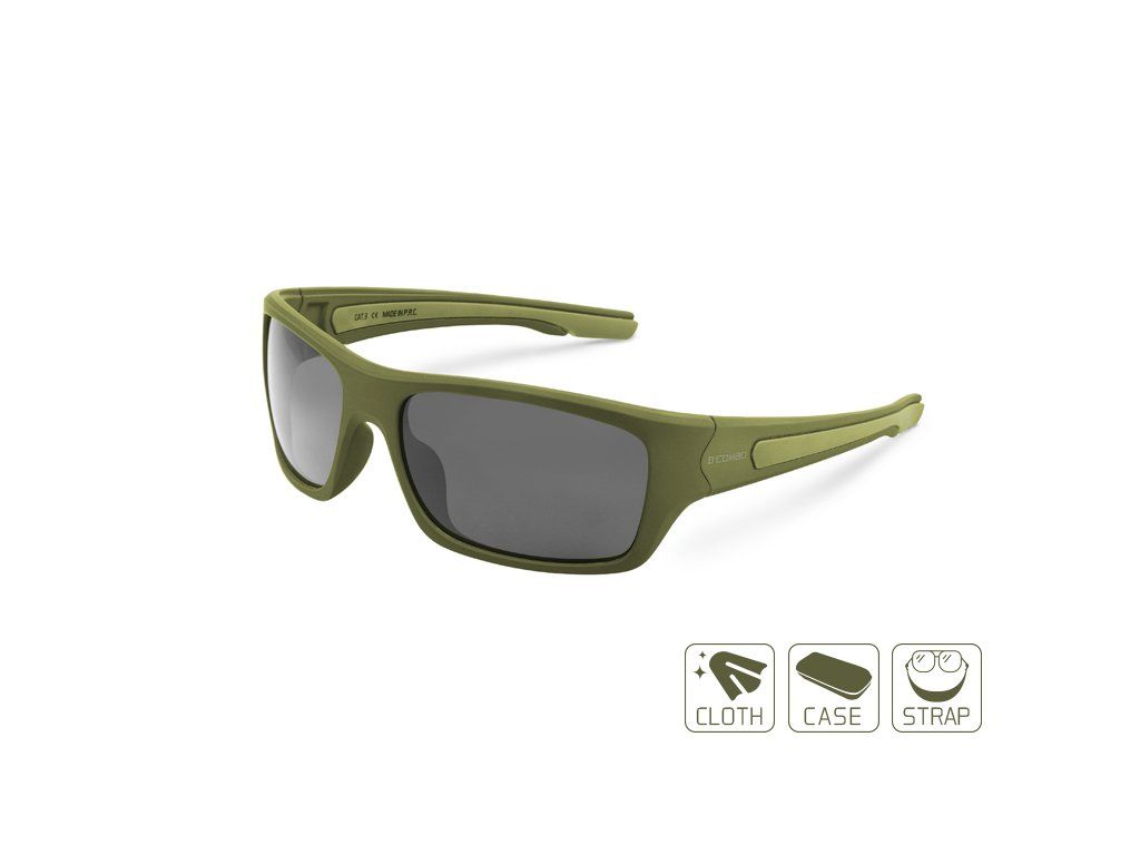SG COMBO rozšiřuje nabídku slunečních brýlí o model, který v základu nenabízí jen samotné brýle, ale také velmi praktické příslušenství. Balení tak navíc obsahuje plovoucí popruh, hadřík na skla a tvrdé transportní pouzdro s háčkem pro upnutí. Brýle jsou navrženy v matné zelené barvě, díky čemuž jsou přímo ideální pro všechny rybáře, myslivce či outdoorové nadšence. Stylové provedení je však předurčuje i k běžnému nošení a využití při sportovních aktivitách. Kvalitní polarizační skla s UV filtrem poskytnou výbornou ochranu před slunečním zářením a zároveň vám pomohou odhalit ryby pod vodní hladinou. Pro komfortní nošení jsou ramínka a plošky dosedající na nos opatřeny pogumovanou vrstvou. Samotný rám je vyroben z velmi lehkého a odolného plastu, což také přispívá k pohodlí během nošení. Polarizační brýle Delphin jsou vysoce kvalitním produktem se všemi potřebnými certifikáty a zkouškami vyžadovanými Evropskou unií. To garantuje jejich zdravotní způsobilost a špičkové vlastnosti potvrzené mnoha testy. Technické parametry: Šířka nos: 2,3cm Rozměr skla: 6,3x4,4cm Délka ramínka: 13cmDoplňkové parametry