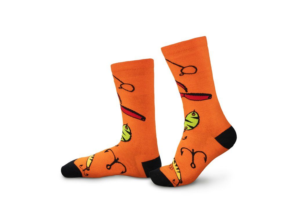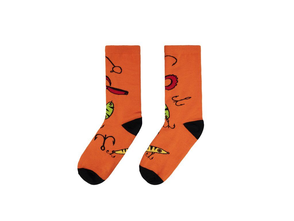 Oranžové ponožky ATAK nenechají chladného ani jednoho vláčkaře. A to zejména kvůli motivu, který je na nich zobrazen. Nástrahy, jigy, háčky, přesně to jsou produkty, které má správný lovec dravých ryb vždy po ruce, nebo jako v tomto případě na nohou :). Univerzální velikost 41-46 poskytne dokonalý komfort pro každou nohu. Pohodlný materiál s hřejivými vlastnostmi oceníte hlavně u jarního a podzimního rybaření, rozhodně je však můžete používat během celého roku. Výška a střih ponožky je vhodná pro různou rybářskou či vycházkovou obuv, díky čemuž jsou vhodné nejen na ryby, ale i běžné nošení. Technické parametry Materiálové složení: 80% bavlna, 15% polyester, 5% elastan Velikost: 41-46Doplňkové parametry