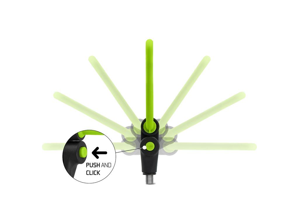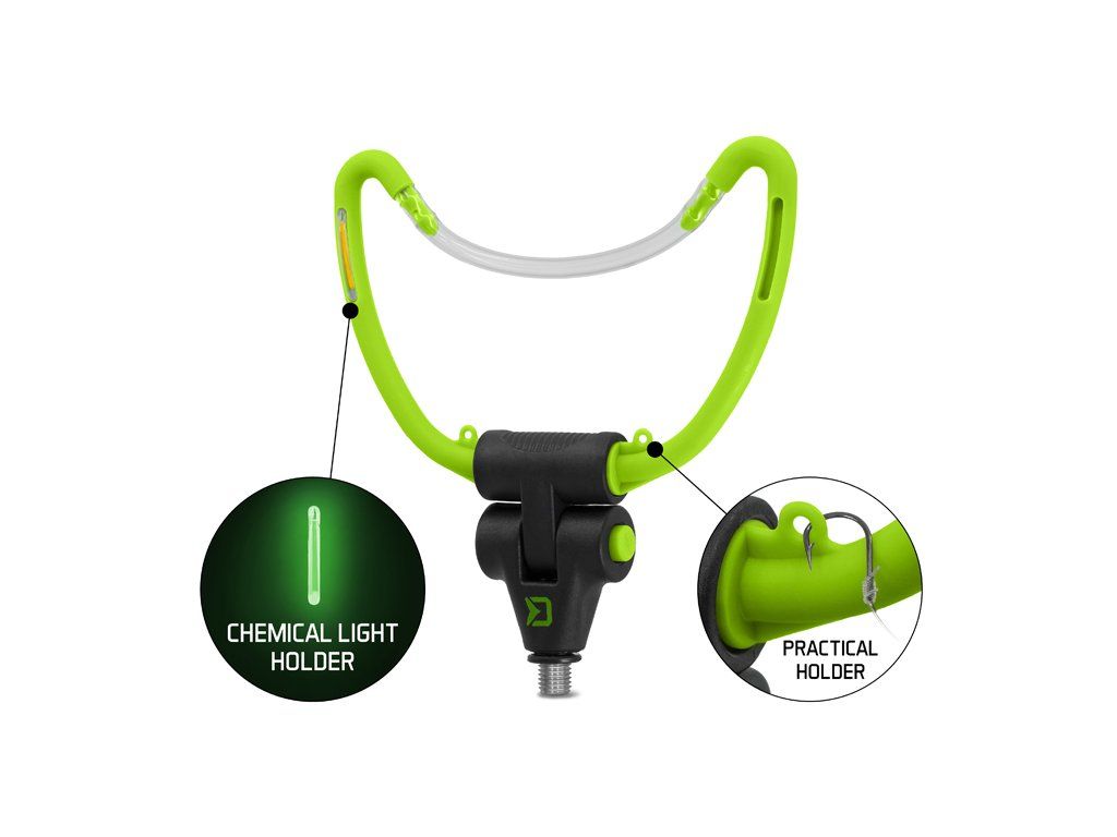 Držák na feeder tvaru U je univerzální, spolehlivý a bezpečný držák prutu. Díky důmyslnému systému tlačítka ve spodní části, lze tento držák polohovat a následně polohu zajistit. Šířka ramen je 14,5cm. Užitečným doplňkem držáku jsou očka pro uchycení háčku, do kterých můžete zachytit háček například při plnění feederového košíku. Držák má na těle umístěny 4 otvory na chemické světlo, což oceníte zejména při nočním rybolovu. Držák je osazen univerzálním závitem a je kompatibilní s většinou vidliček a stojanů dostupných na trhu. Barevná zeleno-černá kombinace dokonale doplňuje feederovou řadu REAXE.Doplňkové parametry