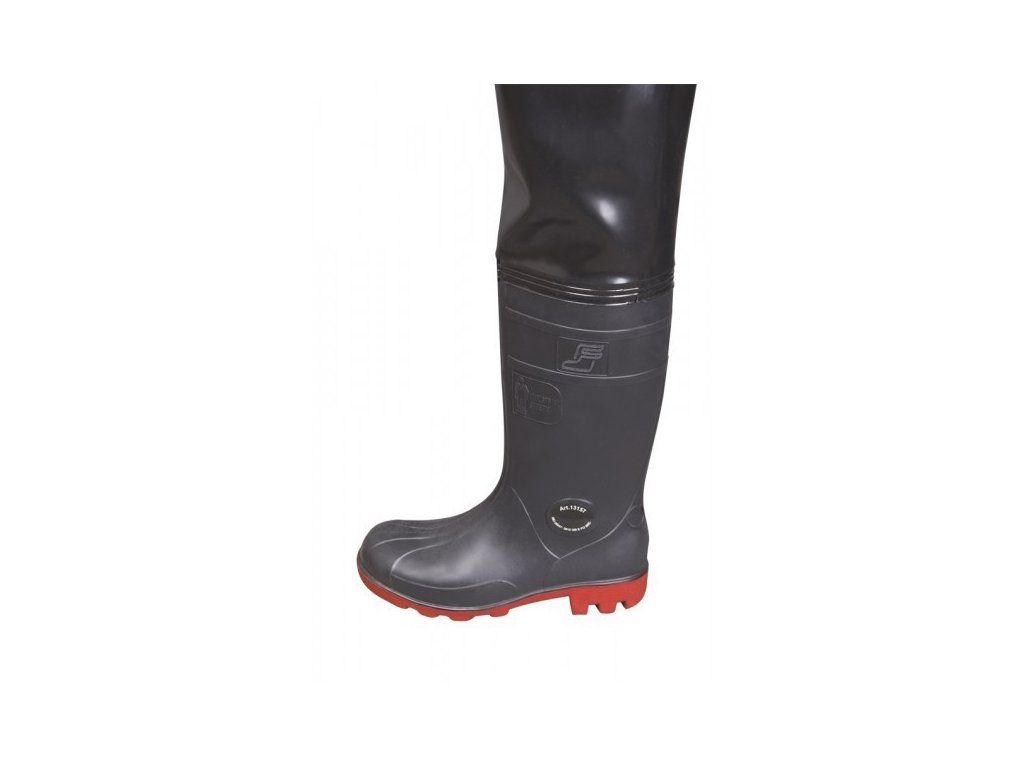 Stehenní brodící boty byly vyrobeny z vysoce kvalitních obuvi PVC. Boty byly testovány na odolnost proti skluzu na keramické podlaze s roztokem laurylsulfátu sodného (NaLS) a na ocelové podlaze s glycerolovou ochranou typu OB FO E SRC. Tyto boty jsou vyrobena z nepromokavé, velmi silné gumy nové generace a nevyžadují speciální ošetření. Je to dobrá ochrana proti vodě. Vysokofrekvenční technika oboustranného svařování zvyšuje pevnost švů. Vlastnosti: • Materiál: PVC/PU/Polyester-Rubber • Gramáž 1000g/m2, síla materiálu 1mmDoplňkové parametry