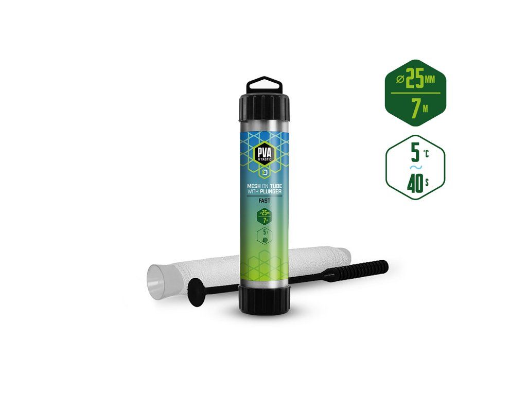 PVA punčocha s kratší dobou rozpadu je ideální pro lov během chladnějších měsíců, nebo při lovu v mělčích hloubkách, kde montáž klesá kratší dobu ke dnu. Jedná se o vysoce kvalitní produkt vyrobený v EU, při kterém díky důkladnému pletení nedochází ke svévolnému trhání punčochy a zároveň se výborně plní i velmi jemnými částicemi, čímž budete moci spolu s nástrahou poslat do vody i maximálně atraktivní návnadu přímo na montáži. Součástí balení je tuba a tlouk, které umožňují snadné plnění punčochy vnadící směsí. PVA punčocha se po čase přímo úměrném teplotě vody rozpustí a tak uvolní krmnou směs v bezprostřední blízkosti nástrahy, čímž výrazně zvýší její atraktivnost pro kaprovité ryby. Upozornění: PVA produkty jsou vodou rozpustné, manipulujte s nimi proto jen se suchýma rukama aby nedošlo k jejich deformaci či poškození. Technické parametry: Průměr: 25mm(úzká) Délka: 7m Doba rozpustnosti: cca 40s/5°C vodaDoplňkové parametry
