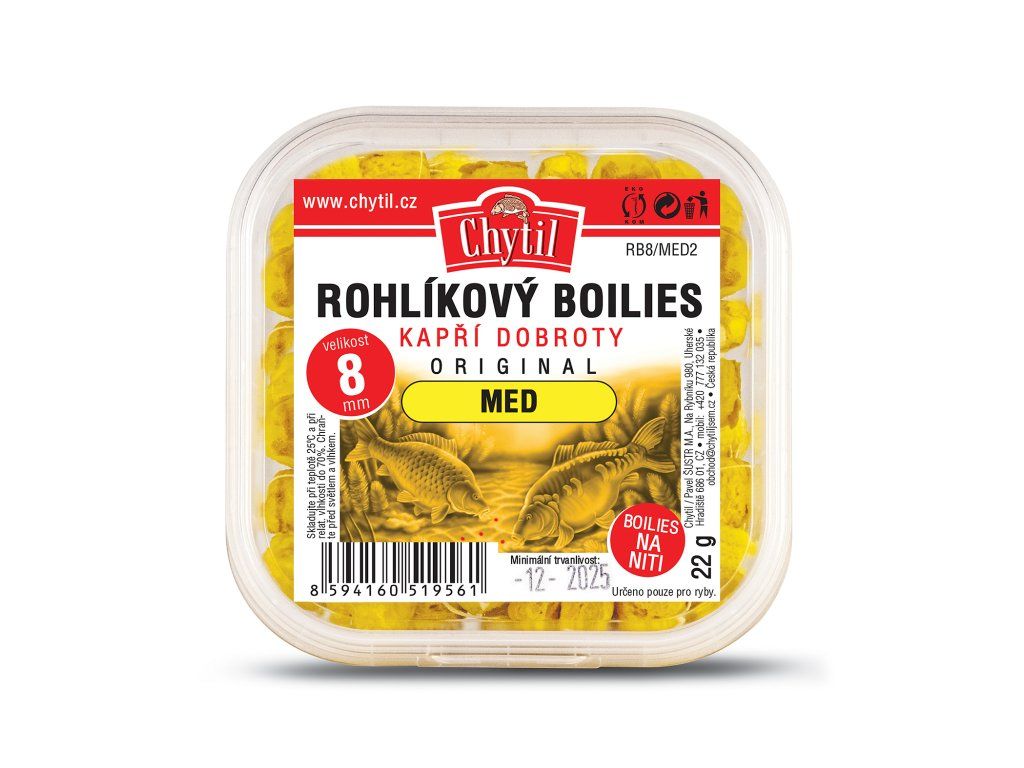 Náš TIP: Pro ještě větší efektivitu lze rohlíkový boilies nadipovat v našem Sweet dipu a následně vložit do práškového želé dipu. Pak získáte tu pravou neodolatelnou nástrahu, která nenechá v klidu ani ryby těch největších kategorií.