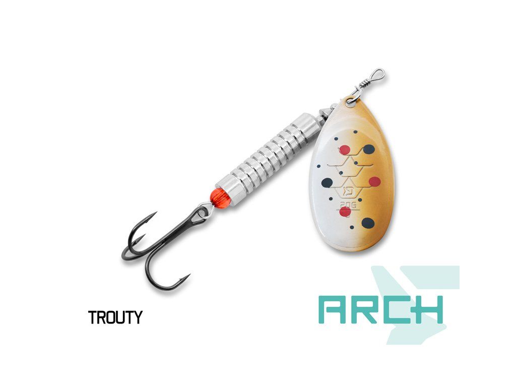 Je ideální nástrahou pro lov širokého spektra dravých ryb. Kvalitní zpracování, dráždivý pohyb a intenzivní vibrace nenechají v klidu žádného dravce. Model ARCH se vyznačuje kulatým listem ideálním pro použití na stojatých vodách. Precizně vyvážené tělo a lehce rotující list umožňuje dokonalý pohyb rotačky i při pomalém vedení nástrahy. Nástraha je opatřena kvalitním trojháčkem pro dokonalý zásek a dobře drží během souboje s bojovnými rybami. Designové provedení modelu Delphin ARCH představuje klíčový faktor úspěchu a je tvořeno léty ověřenými barevnými kombinacemi, které jsou nanášeny pomocí UV aktivních barev. Podstata UV složky se projevuje zejména v hlubších partiích nebo v přikalené vodě po deštích, kdy je viditelnost značně snížena. Zatímco běžné barevné spektrum se s přibývající hloubkou ztrácí, UV pigmenty odrážejí zbytkové světlo a nástraha se pro dravce doslova rozsvítí. Metalické provedení efektivně odráží sluneční světlo a silnými odlesky láká dravce ze širokého okolí. Díky různým velikostním provedením dokážete přesně zacílit na konkrétní druh ryby – menší velikosti jsou vhodné na lov pstruhů, jelců či okounů, střední velikosti zase na lov bolenů či candátů a ty největší vám pomohou zacílit na velké predátory jako jsou štiky či hlavatky.Doplňkové parametry
