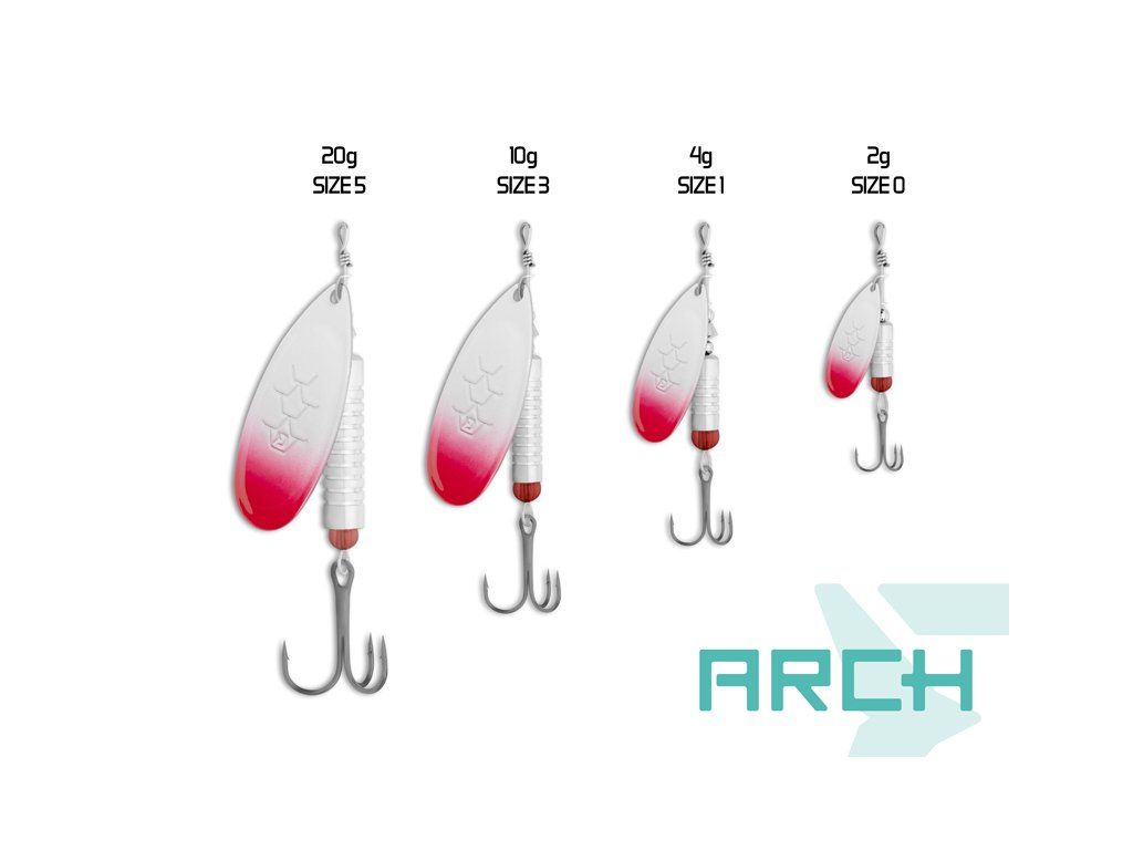 Je ideální nástrahou pro lov širokého spektra dravých ryb. Kvalitní zpracování, dráždivý pohyb a intenzivní vibrace nenechají v klidu žádného dravce. Model ARCH se vyznačuje kulatým listem ideálním pro použití na stojatých vodách. Precizně vyvážené tělo a lehce rotující list umožňuje dokonalý pohyb rotačky i při pomalém vedení nástrahy. Nástraha je opatřena kvalitním trojháčkem pro dokonalý zásek a dobře drží během souboje s bojovnými rybami. Designové provedení modelu Delphin ARCH představuje klíčový faktor úspěchu a je tvořeno léty ověřenými barevnými kombinacemi, které jsou nanášeny pomocí UV aktivních barev. Podstata UV složky se projevuje zejména v hlubších partiích nebo v přikalené vodě po deštích, kdy je viditelnost značně snížena. Zatímco běžné barevné spektrum se s přibývající hloubkou ztrácí, UV pigmenty odrážejí zbytkové světlo a nástraha se pro dravce doslova rozsvítí. Metalické provedení efektivně odráží sluneční světlo a silnými odlesky láká dravce ze širokého okolí. Díky různým velikostním provedením dokážete přesně zacílit na konkrétní druh ryby – menší velikosti jsou vhodné na lov pstruhů, jelců či okounů, střední velikosti zase na lov bolenů či candátů a ty největší vám pomohou zacílit na velké predátory jako jsou štiky či hlavatky.Doplňkové parametry