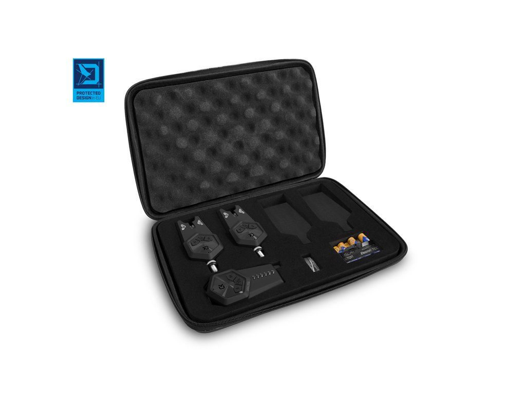 Od prvotního konceptu až po finální produkt prošla opravdu dlouhá doba. Vývoj, konzultování, designování a testování na různých Evropských vodách. To vše předcházelo uvedení sady TECTON na trh. Jedinečný vzhled z dílny designérů značky Delphin se spojil s inovativním vývojem a spolehlivou elektronikou, což v konečném důsledku vytváří vysoce funkční, originální sadu s bezkonkurenční cenou. TECTON disponuje všemi nezbytnými vlastnostmi pro plnohodnotný lov během vašich výprav za kapry. Základem je spolehlivá světelná, zvuková či vibrační signalizace záběru za jakýchkoliv povětrnostních podmínek. Nechybí ani důležité funkce jako možnost nastavení tónu, hlasitosti či citlivosti. Samozřejmostí v tomto případě je také absolutní voděodolnost a excelentní výdrž baterií. Tělo signalizátorů a příposlechu je vyrobeno z pevného plastu, což zaručuje vysokou odolnost vůči mechanickému poškození. Plast je navíc potažen jemnou pogumovanou vrstvou, čímž je velmi příjemný na dotek a vytváří dojem podstatně dražší sady. Signalizátor je vybaven třemi tlačítky. Pomocí tlačítka uprostřed je možné jej zapnout, resp. vypnout. Při delším podržení středového tlačítka se sepne podsvícení záběrového kolečka, což vytváří ve tmě velmi pěkný vizuální efekt a zároveň slouží jako noční dioda, která v noci umožňuje snadnou detekci umístění prutů. Krátkým mačkáním středového tlačítka je navíc možné zvolit jeden z osmi tónů. Pro zpětný záběr, resp. „padák“ budete upozorněni odlišným tónem signalizace. Pomocí tlačítka umístěného na signalizátoru vlevo (V) navolíte požadovanou hlasitost, včetně tichého módu. Tlačítko napravo (S) umožňuje vybrat jednu z 5 úrovní citlivosti. Součástí signalizátorů jsou odnímatelné snag gears, které se postarají o to, aby prut při prudkých záběrech v žádném případě nemohl „vyletět“ ze signalizátoru. V základní sadě 2+1 se nachází spolu s příposlechem červený a modrý signalizátor, ale v případě TECTONU je možné dokoupit až čtyři další barvy (žlutá, zelená, fialová, bílá). To dává možnost pořídit si k sadě signalizátory s barvou diody, jakou preferujete. To ovšem není jediná výhoda širokého spektra barev. Pozornému oku určitě neujde, že na přijímači se nachází až šest diod, což umožňuje spárování šesti různých signalizátorů TECTON na jeden příposlech, kdy různé barvy signalizátorů zajisté oceníte. Samotný příposlech se vyznačuje spolehlivým přijímáním signálu, v závislosti na podmínkách až do vzdálenosti 200 metrů. Disponuje možností nastavení jedné z 8 úrovní hlasitosti a možnosti zapnutí či vypnutí vibrací při záběru. Tón signalizace na přijímači je totožný s tónem, který jste si zvolili na jednotlivých signalizátorech. Pro zpětný záběr, resp. „padák“ budete upozorněni odlišným tónem signalizace. Do detailů propracovaný tvar jej umožňuje svisle položit například na stolek nebo zavěsit za popruh s poutkem (součást balení). Všechna zvolená nastavení signalizátoru i přijímače se uchovávají v paměti. Sada TECTON je napájena pomocí AAA 1,5V baterií (3x pro příposlech, 2x pro signalizátor) a při jejich nízké kapacitě vás signalizátor i příposlech upozorní blikáním v 5 sec. intervalech. Sada je dodávána v praktickém kufříku, který se postará o její bezpečnost během transportu. Technické parametry: Sada 2+1 obsahuje: - 2x Signalizátory záběru - 1x Přijímač - 1x Transportní kufřík - 2x snag gears - 1x poutko na zavěšení - 7x baterie AAA 1,5 V k otestování funkčnosti funkcí Přijímač/funkce - Voděodolný - 8 úrovní hlasitosti, včetně tichého módu (tlačítko V) - 8 různých tónů signalizace (stejný tón jako na signalizátoru) - Vibrační mód (tlačítko “vibrace“) - 6 barevných signalizačních LED diod - Zvolená nastavení uchovává v paměti - Indikace slabé baterie blikáním v 5 sec. intervalech - Párování/vymazání párování (tlačítko M) - Dosah 200m v závislosti na terénu - Napájení 3x1,5V baterie (AAA) Signalizátor/funkce - Voděodolný - 8 úrovní hlasitosti, včetně tichého módu (tlačítko V) - 8 různých tónů signalizace (tlačítko T) - 5 úrovní citlivosti (tlačítko S) - Zvolená nastavení uchovává v paměti - Signalizace zpětného záběru - odlišný tón - Paměťová dioda - svítí nepřetržitě 15 sec. po záběru - Indikace slabé baterie blikáním v 5 sec. intervalech - Podsvícená rolnička - Možnost osazení snag gearů (součást balení) - Vstup pro 2.5mm konektor - Napájení 2x1,5V baterie (AAA) V kufříku sady Tecton navíc naleznete zdarma i set základních baterií. Slouží k otestování modelu a funkcí při koupi produktu. Pro používání na rybách doporučujeme zakoupit nový set baterií. PROTECTED DESIGN - Tento produkt byl kompletně navržen designéry značky Delphin. Jeho design a technické řešení jsou natolik unikátní, že je registrován a chráněn na území celé Evropské unie.Doplňkové parametry