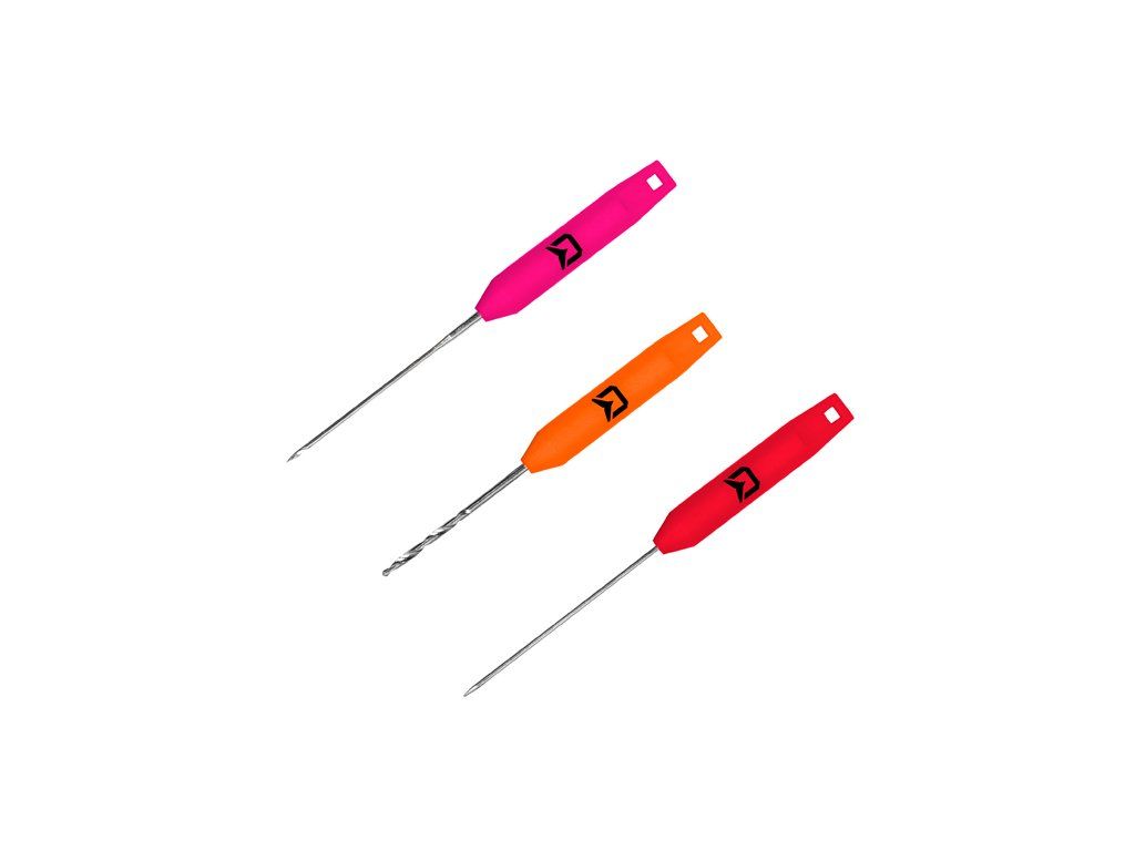 Cenově výhodný set složený ze dvou feederových jehel a vrtáku na tvrdé nástrahy. V balení se nachází jehla SLIM QuickSTOP s ostrým hrotem, vhodná při použití návazců s quickstop zarážkami. SLIM Safety je univerzální jehlou s háčkem, která si najde uplatnění při většině nástrah nejen při feederu, ale také při kaprařině. Pokud bude vaše nástraha opravdu tvrdá, jistě oceníte odolný vrták SLIM DRILL, se kterým ji nebudete mít žádný problém předvrtat. Všechny tři prvky setu disponují pevnou kovovou částí a plastovou rukojetí, která umožňuje pohodlnou manipulaci. Rukojeť každé jehly je ve výrazné barvě, čímž ji ve vaší výbavě vždy lehce zaznamenáte. Technické parametry: Jehla Delphin SLIM QuickSTOP Celková délka: 80mm Délka jehly: 40mm Rukojeť: červená Technické parametry: Jehla Delphin SLIM Safety Celková délka: 80mm Délka jehly: 40mm Rukojeť: růžová Technické parametry: Vrták Delphin SLIM Drill Celková délka: 70 mm Délka vrtáku: 30 mm Rukojeť: oranžováDoplňkové parametry