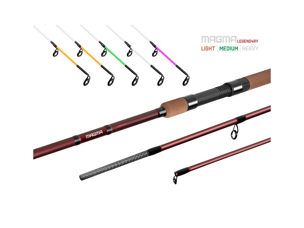 Dokonale vyladěná, v pořadí již čtvrtá generace prutů MAGMA, které dnes už jednoznačně patří mezi legendy na feederové scéně. Svědčí o tom desetitisíce prodaných kusů a dovolíme si tvrdit miliony zdolaných ryb. Lepší recept na odladěný prut, než je samotný čas si nedovedeme představit. I to je jedním z důvodů, proč v novém vydání dostala do názvu přívlastek LEGEND4RY. Neodmyslitelnou součástí prutu MAGMA je charakteristická vínově bordó barva a léty ověřené štíhlé blanky, které se staly základem i čtvrté generace. Bylo by však chybou neposunout tento prut opět o level výše, a proto se dočkal hned několika doslova revolučních technických i designových vylepšení. Stejně jako předchozí verze, i MAGMA LEGEND4RY představuje excelentně vyvážený prut vyznačující se vysokou silou a zároveň citlivostí. Použití kvalitního karbonu a inovativních výrobních technologií umožnilo vytvoření velmi štíhlého blanku s nízkou hmotností při zachování vysoké pevnosti. Samozřejmostí je vysoká odolnost vůči mechanickému namáhání, což v praxi znamená vysokou životnost prutu. Vysoká pevnost navíc poskytuje skvělou kontrolu během zdolávání a umožňuje úspěšné zdolání i kapitálních ryb. Prut se vyznačuje semi-parabolickou akcí, čímž efektivně přispívá tlumení výpadů ryb a tím snižuje možnost uvolnění háčku z tlamy během zdolávání. Oproti předchozímu modelu jsme výrazně zapracovali na výběru a rozložení oček. Hlavním cílem této optimalizace bylo vyvážení a odlehčení prutu a prodloužení vzdálenosti a přesnosti hodů. Po dlouhodobém vývoji, testování a upravování rozložení oček se nám podařilo dosáhnout stanoveného cíle a vy tak můžete své montáže snadno dopravit o několik metrů dále s podstatně vyšší přesností. Kvalitní očka se SIC výplní poskytují optimální přechod vlasce a eliminují tření. Významnou obměnou prošel i samotný tvar a materiál rukojeti. Korek jsme nahradili EVA pěnou, která se vyznačuje maximální trvanlivostí a odolností. Ergonomický tvar rukojeti obsahuje zúžení ve středové části a seříznutí s efektním šrafováním. Tato úprava působí nejen vysoce esteticky a originálně, ale poskytuje také praktické využití v podobě vytvoření plochy pro pohodlnější opření prutu a předloktí. Inovací prošly i špičky prutu. Důkladně navržené rozložení a velikosti oček přispívají k redukci hmotnosti špičky, což v konečném důsledku vede k lepšímu vyvážení blanku. Stejně jako u předchozí verze jsou pruty dodávány s pěti druhy špiček různé tvrdosti. Rozbor detailů MAGMY LEGEND4ARY by mohl pokračovat dalších 1000 slov. Ale k čemu? Vezměte ji k vodě a okamžitě pochopíte, proč se tento prut stal legendou! Špičky určené k modelu MAGMA LEGENDARY jsou kompatibilní také s předešlými generacemi prutů MAGMA. Technické parametry: Model: LEGEND4RY Light 300cm/90g Počet dílů: 3+špičky Průměr blanku nad rukojetí: 12mm Počet oček (prut + špička): 7+6 Transportní délka: 105cm Hmotnost: 180g Rukojeť: EVA pěna Délka rukojeti (od spodní části prutu po střed sedla): 42cm Průměr špičky: 3,0mm Model: LEGEND4RY Light 330cm/90g Počet dílů: 3+špičky Průměr blanku nad rukojetí: 12,6mm Počet oček (prut + špička): 7+6 Transportní délka: 116cm Hmotnost: 198g Rukojeť: EVA pěna Délka rukojeti (od spodní části prutu po střed sedla): 43cm Průměr špičky: 3,0mm Model: LEGEND4RY Light 360cm/90g Počet dílů: 3+špičky Průměr blanku nad rukojetí: 13mm Počet oček (prut + špička): 7+6 Transportní délka: 125,5cm Hmotnost: 224g Rukojeť: EVA pěna Délka rukojeti (od spodní části prutu po střed sedla): 46cm Průměr špičky: 3,0mm Model: LEGEND4RY Medium 360cm/120g Počet dílů: 3+špičky Průměr blanku nad rukojetí: 13,5mm Počet oček (prut + špička): 7+6 Transportní délka: 125cm Hmotnost: 240g Rukojeť: EVA pěna Délka rukojeti (od spodní části prutu po střed sedla): 47cm Průměr špičky: 3,0mm Model: LEGEND4RY Heavy 360cm/150g Počet dílů: 3+špičky Průměr blanku nad rukojetí: 13,7mm Počet oček (prut + špička): 7+6 Transportní délka: 126cm Hmotnost: 266g Rukojeť: EVA pěna Délka rukojeti (od spodní části prutu po střed sedla): 47cm Průměr špičky: 3,2mm Model: LEGEND4RY Heavy 390cm/150g Počet dílů: 3+špičky Průměr blanku nad rukojetí: 14,3mm Počet oček (prut + špička): 7+6 Transportní délka: 136cm Hmotnost: 276g Rukojeť: EVA pěna Délka rukojeti (od spodní části prutu po střed sedla): 47,5cm Průměr špičky: 3,2mmDoplňkové parametry