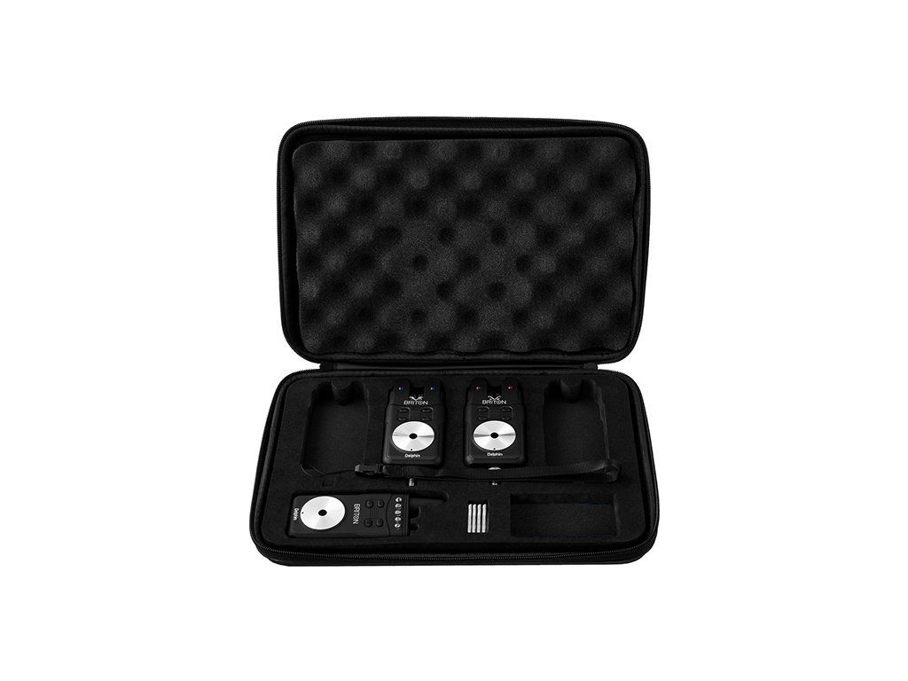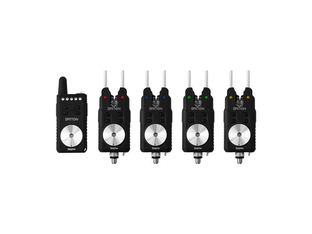 Excelentně zpracovaná sada, která je promyšlená do nejmenšího detailu. Už na první pohled vás osloví minimalistický design, který je nadčasový a který tuto sadu předurčuje k tomu, aby i po letech používání vypadala stále aktuální a neotřele. První dotek se sadou je také nadmíru pozitivní. Použité jsou díly bezchybného zpracování, všechny lícují, zpracování je na velmi vysoké úrovni a použité jsou ty nejkvalitnější materiály, včetně ušlechtile zpracovaných hliníkových krytů reproduktorů. Ty jsou jednoznačně tím nejsilnějším designovým prvkem této sady. Všechny plastové části jsou zase hodnotně pogumované, což evokuje dojem výrazně dražších sad. Komplikovaný přístup k bateriím přes neforemné kryty je minulostí. BRITON se vyznačuje velmi dobrým přístupem k napájení, a tím přispívá k velmi rychlému osazení baterií před lovem. Přijímač i signalizátor jsou oba shodně napájeny třemi kusy baterií typu AAA. BRITON navíc v dlouhodobých testech vynikal neskutečně dlouhou výdrží baterií a byl testován opravdu v těch nejextrémnějších výkyvech počasí (-25 ° C až + 35 ° C). Sada má v závislosti na podmínkách (okolní terén, hustota porostu, kapacita baterií) reálný dosah až přes 200m! Navíc díky speciálnímu tvarování těla a překrytí elektroniky i výbornou odolnost vůči vodě. Ani hustý déšť napříště nepřeruší spojení vašeho přijímače se signalizátory. Spuštění probíhá pomocí pákových přepínačů. To zaručí, že bez nejmenšího problému dokážete sadu ovládat i v naprosté tmě. Navíc je statisticky tento mechanismus mnohem méně náročný na poškození. U přijímače i signalizátoru máte na výběr až z 8 různých tónů a 8 různých úrovní hlasitosti (včetně tichého módu). U přijímače je samozřejmostí vibrační mód, indikace slabé baterie a uchovávání nastavení v paměti. Pro komfortnější přenos je grátis popruh na ruku. Signalizátor poskytuje možnost podsvícení rolničky, osazení tzv. uší (snag gears), 5 úrovní citlivosti (od 0.8 až po 4.0cm), indikaci slabé baterie a vstup pro 2.5mm jack. Také nastavení uchovává v paměti. Rolničku lze mechanicky zablokovat pomocí magnetu, a tím pádem sada při osazování na rodpod nesignalizuje falešné záběry. Při koupi kompletní sady dostáváte automaticky pevný kufřík a podrobný návod v několika jazycích. Už po prvním použití sady však budete nadšeni, jak jednoduše probíhá celé její ovládání. Za kvalitou sady Delphin BRITON si jednoznačně stojíme. I to je důvod, proč poskytujeme na tuto sadu záruku až 3 roky! Sada 2+1 obsahuje vždy modrý a červený signalizátor. Sada 3+1 obsahuje vždy modrý, červený a zelený signalizátor. Sada 4+1 obsahuje vždy modrý, červený, zelený a žlutý signalizátor.Doplňkové parametry